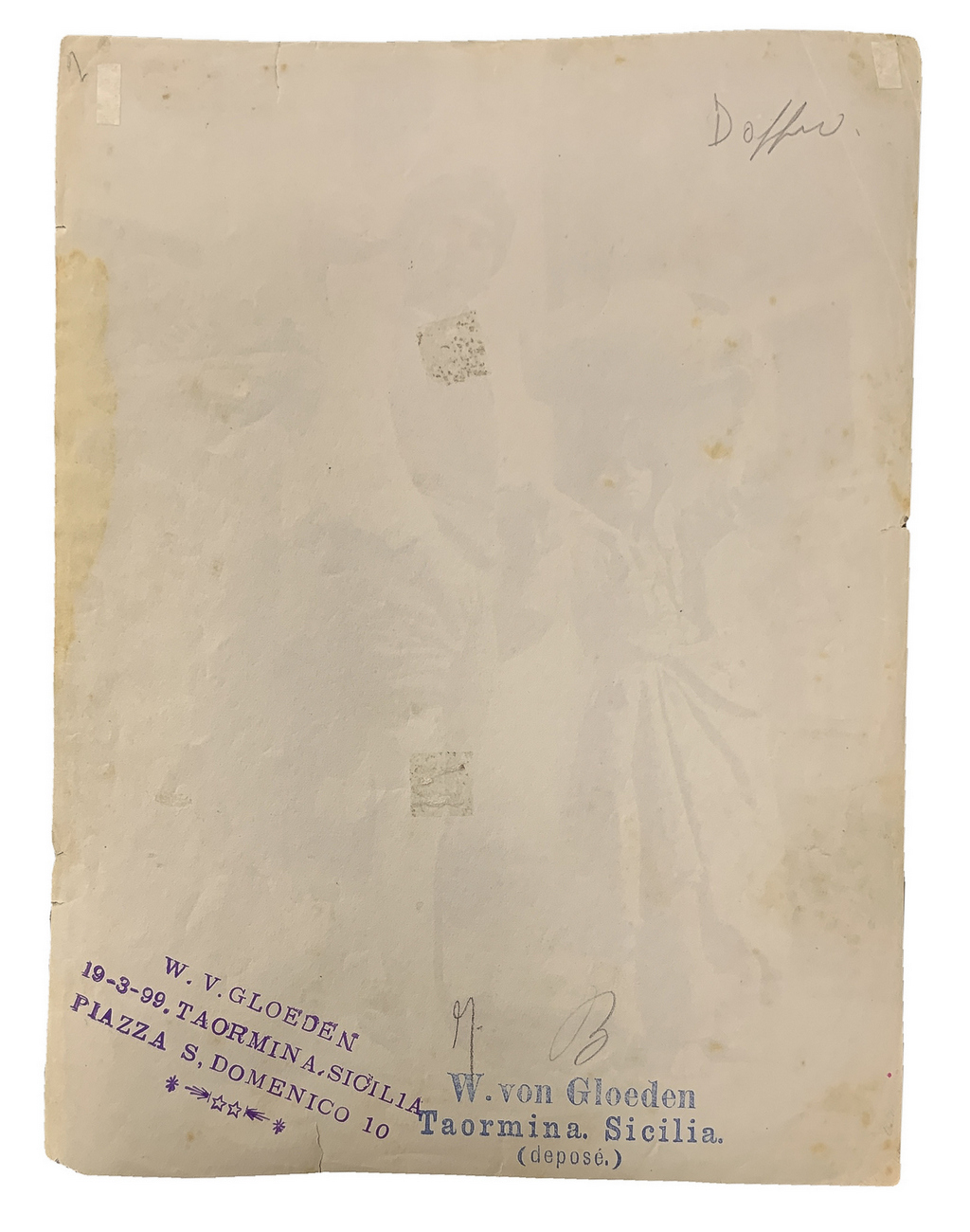 "Wilhelm Von Gloeden fu un fotografo di origine tedesca che passò parte della sua vita in Sicilia, nello specifico a Taormina, città che scelse come seconda casa. Furono i problemi di salute giovanili a portarlo nella penisola. Nello specifico la scelta di Taormina è legata all'ideale onirico della Sicilia che il fotografo sprigiona nella sua foto attraverso la scelta di modelli abbigliati alla maniera classica.
