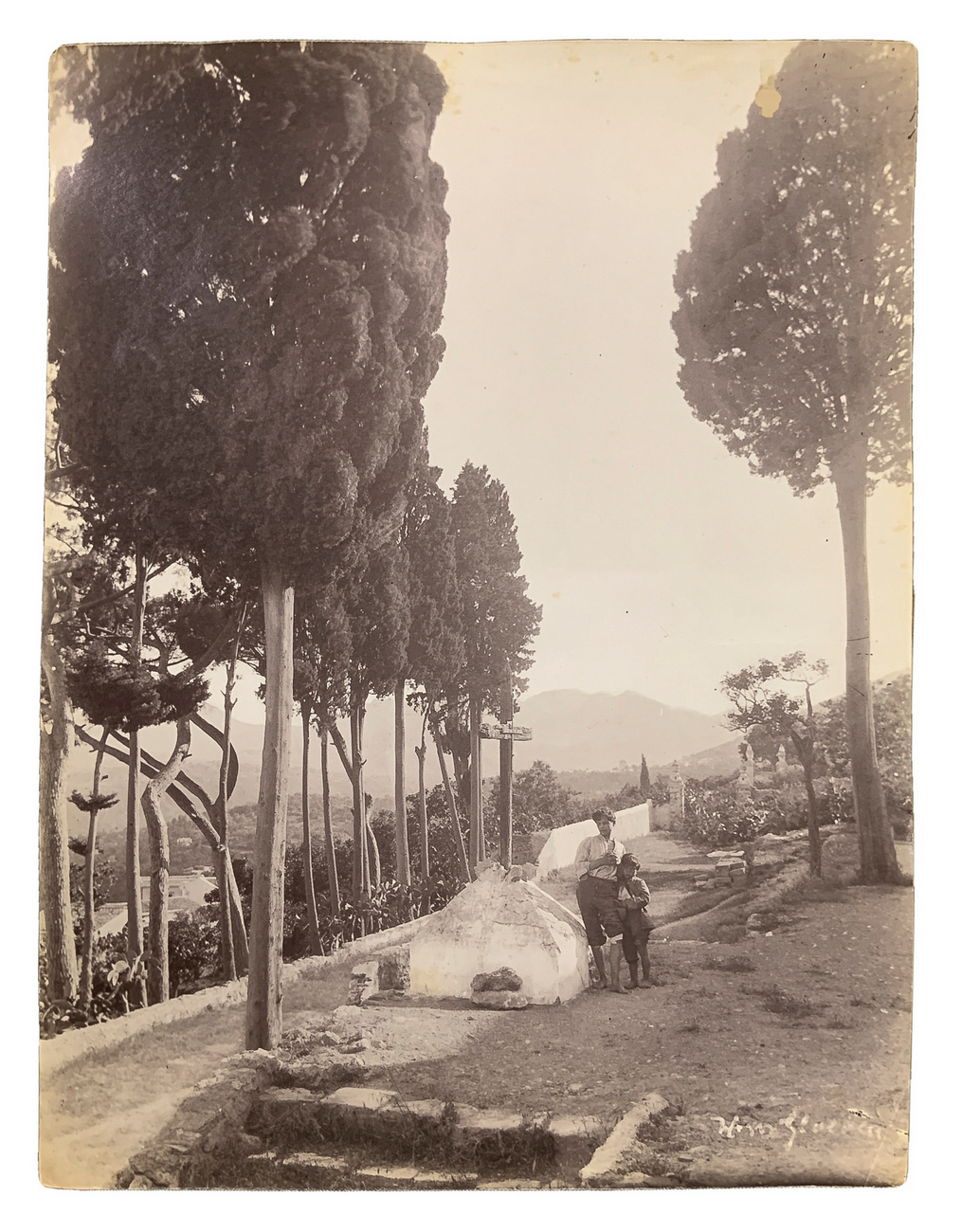 Wilhelm von Gloeden (1856-1931), foto all'albumina raffigurante salita con alberi di Taormina (oggi Via Luigi Pirandello