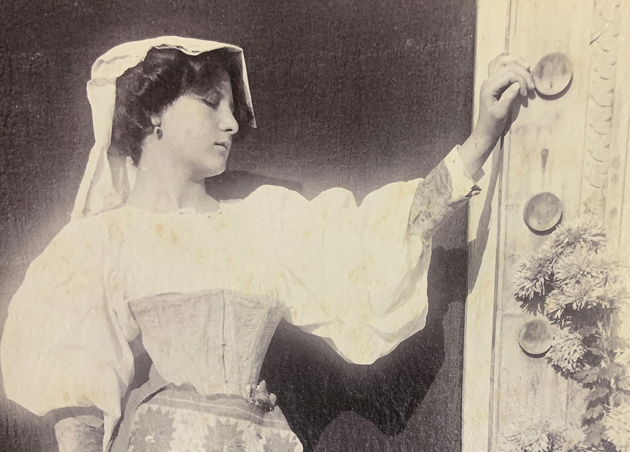 Guglielmo Pluschow (1852-1930), foto all'albumina raffigurante giovane donna in costume tipico. Timbrata sul retro Gugli