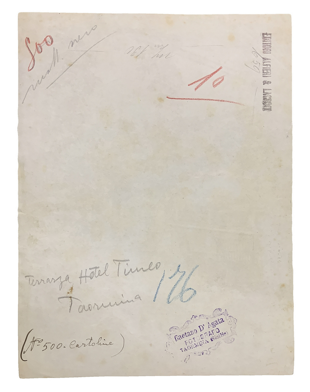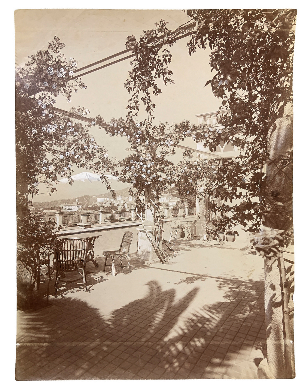 Gaetano D'Agata (1883-1949), foto all'albumina raffigurante vista dell'Etna dal terrazzo dell'Hotel Timeo di Taormina. T