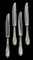 Servizio di posate in argento con decorazione fiorata, composto da 12 forchette (500 gr), 11 cucchiai (500 gr), 12 coltelli, 12 forchettine dolce (230 gr), 12 cucchiaini tè ( 210 gr)