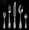 Servizio di posate in argento con decorazione fiorata, composto da 12 forchette (500 gr), 11 cucchiai (500 gr), 12 colte