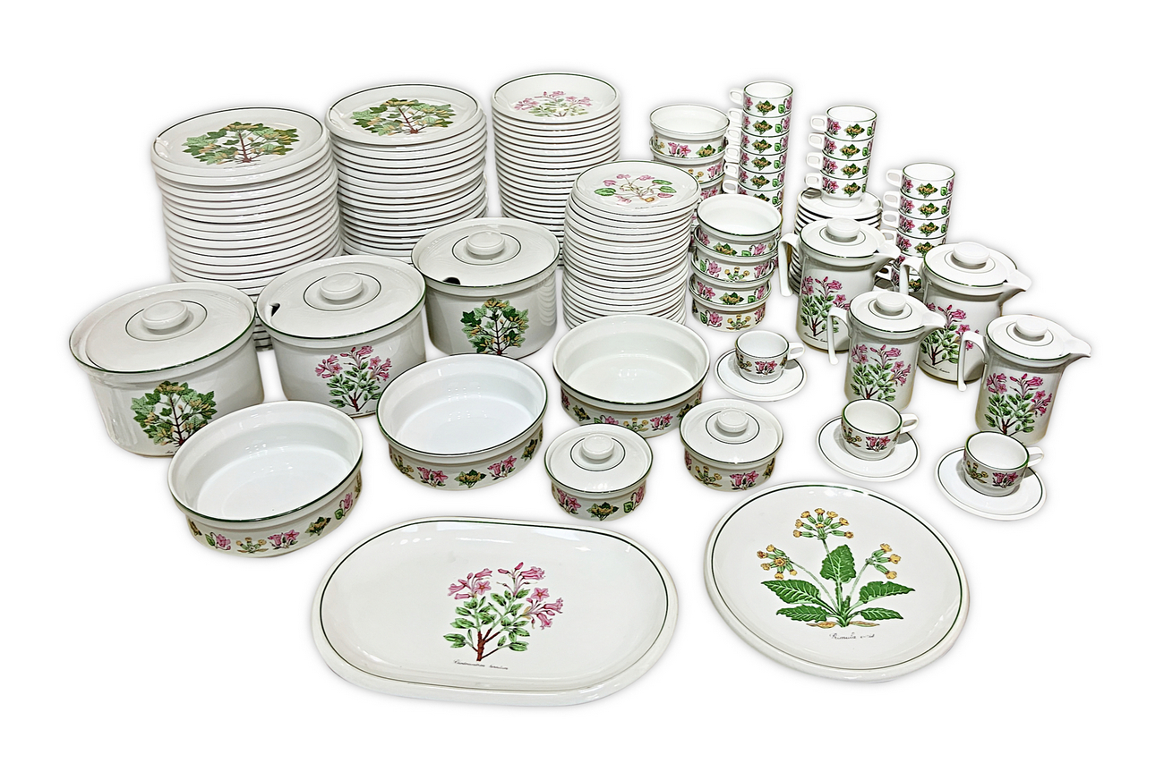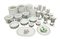 Servizio Irabia Pamplona Espana, composto da 47 piatti piani, 25 piatti fondi, 1 piatto ovale e 1 rotondo, 3 insalatiere, 2 zuppiere con buco per il mestolo e 1 senza buco, 24 piattini frutta, 23 tazze, 23 piattini, 10 coppette dessert, 2 lattiere, 2 caffettiere, 2 zuccheriere,