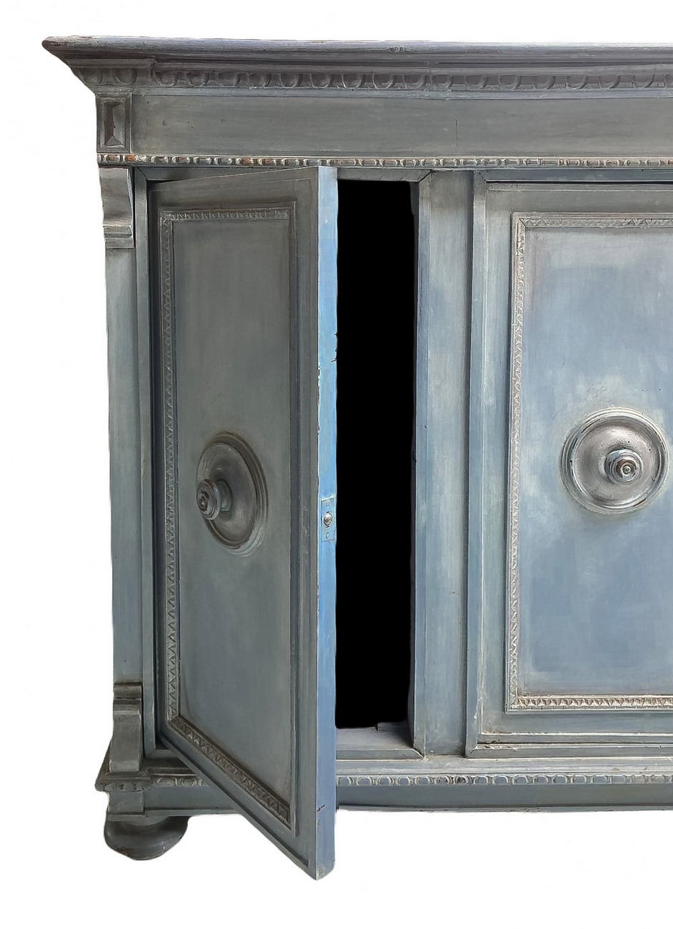 Servante shabby chic laccata in azzurro polvere siciliano su mobile dei primi del XIX secolo. Mobile a quattro ante con mensole interne. H cm 110x185x50