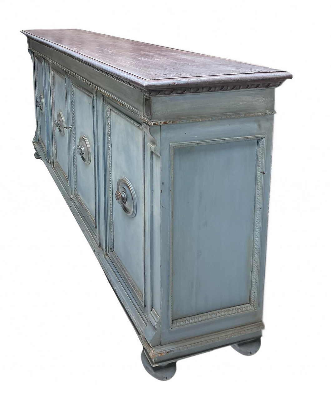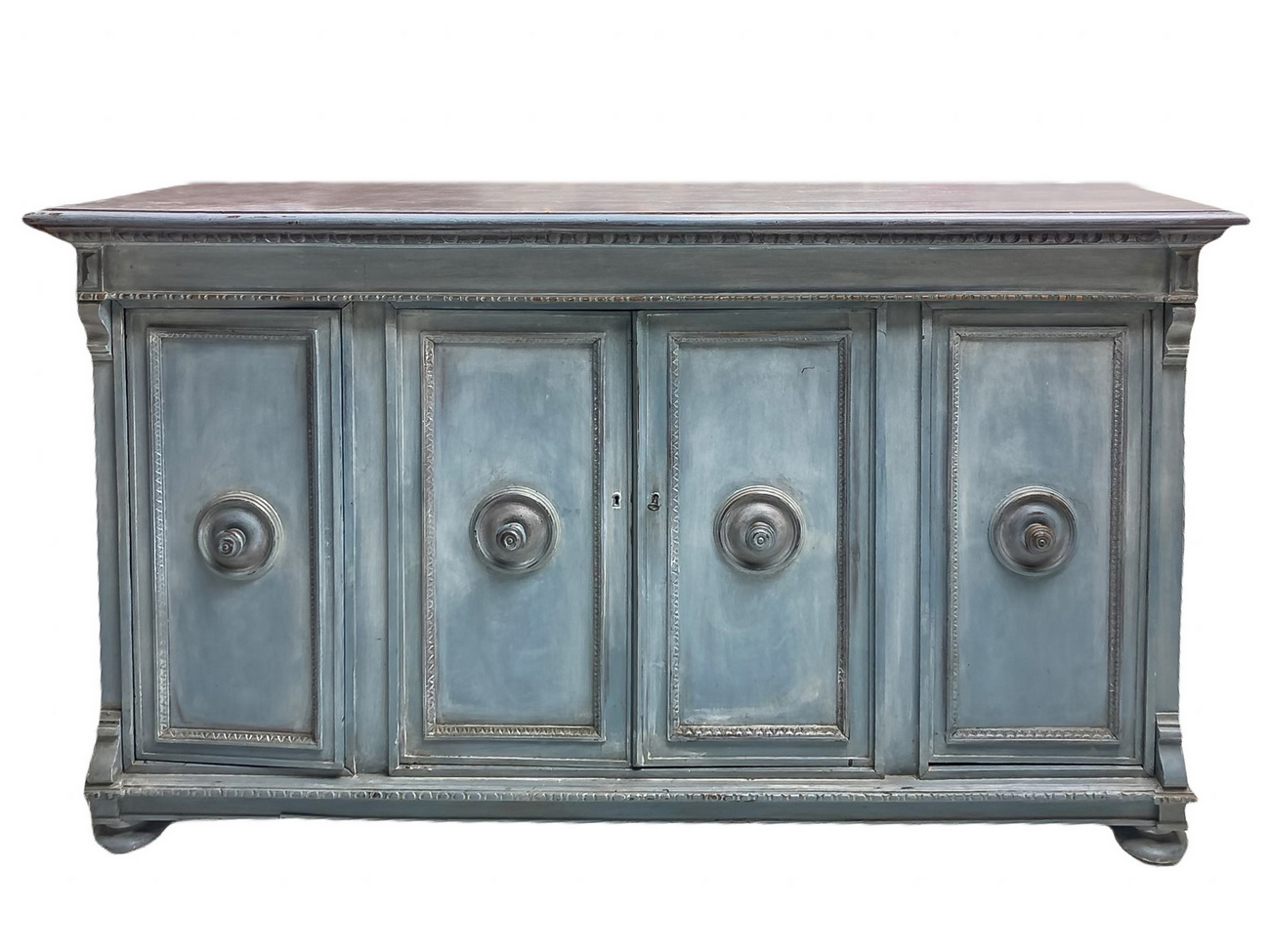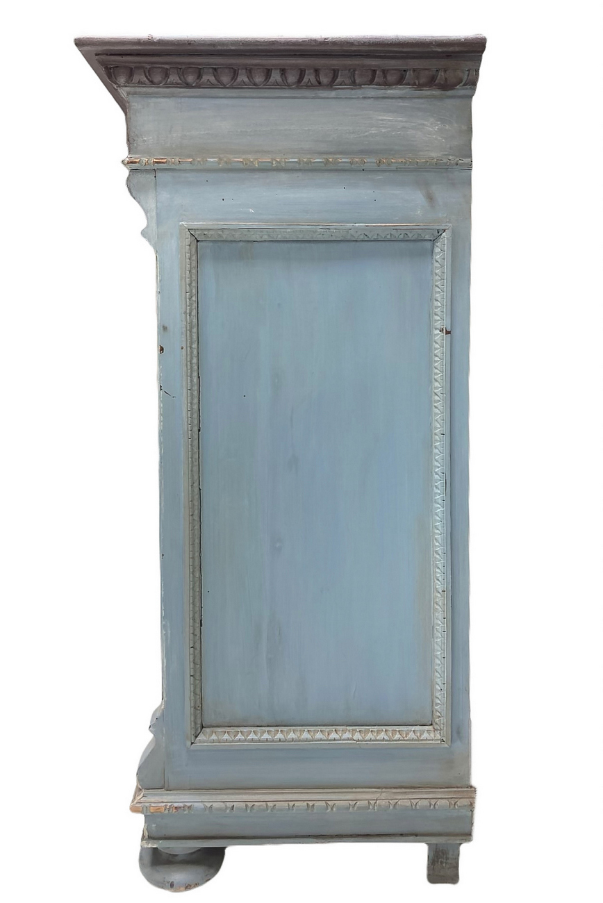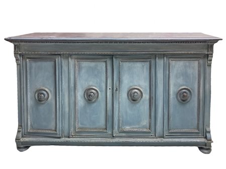 Servante shabby chic laccata in azzurro polvere siciliano su mobile dei primi del XIX secolo. Mobile a quattro ante con