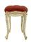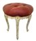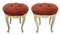 Coppia di pouf shabby chic con stoffa capitonnè color bordeaux. Su sgabelli del XIX secolo. H cm 52 x diametro cm 46