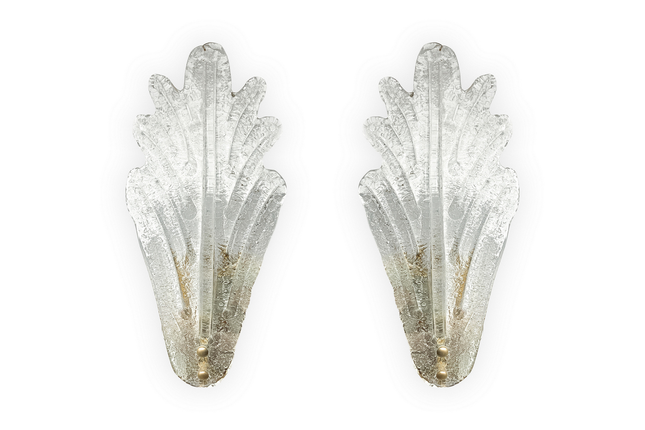 Lotto 463 | Zonca, gruppo di n. 2 appliques, in vetro rugiada-Murano con base in ottone zapponato. Una luce, anni '80. H cm 35x18