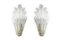 Zonca, gruppo di n. 2 appliques, in vetro rugiada-Murano con base in ottone zapponato. Una luce, anni '80. H cm 35x18