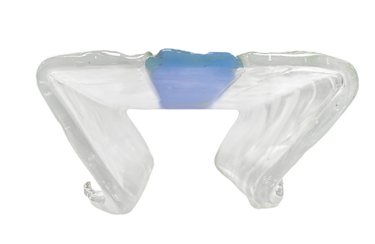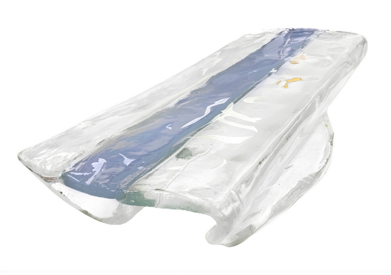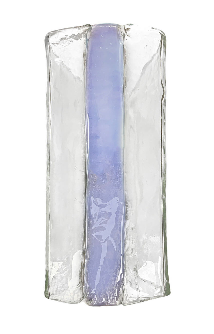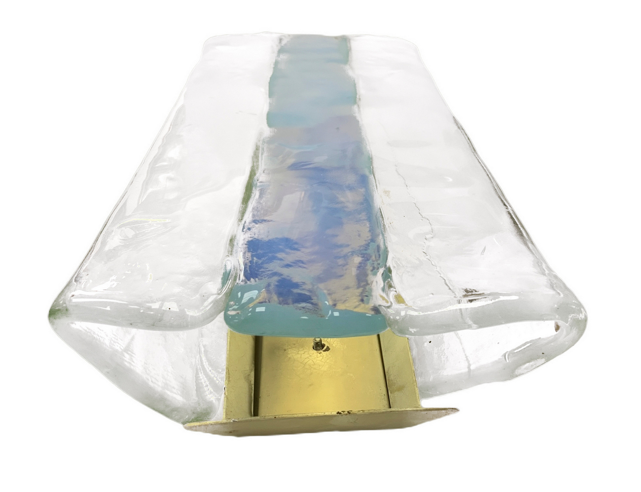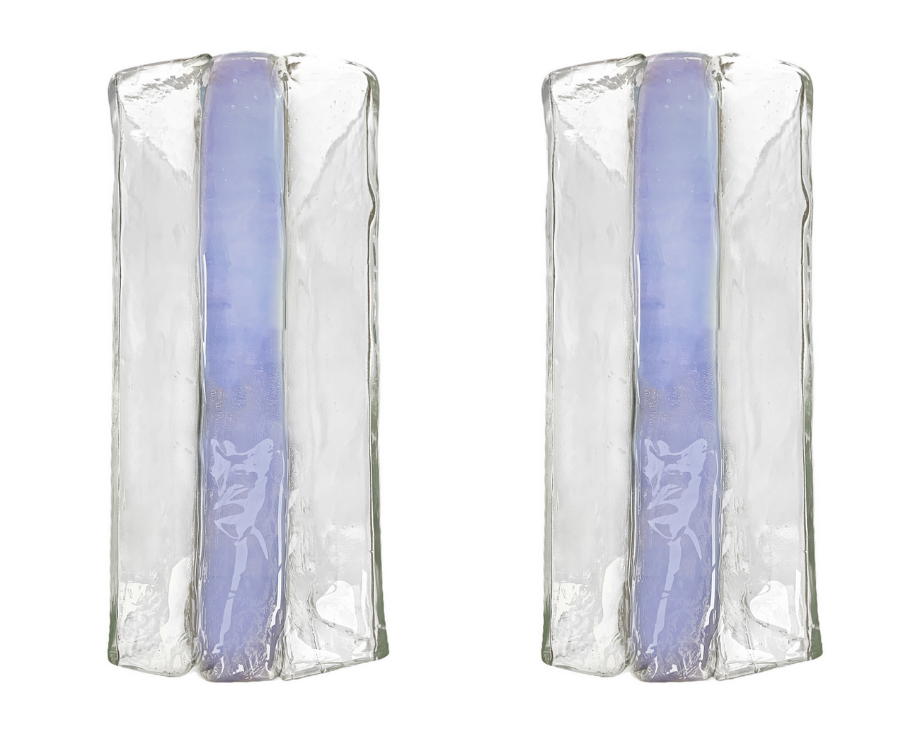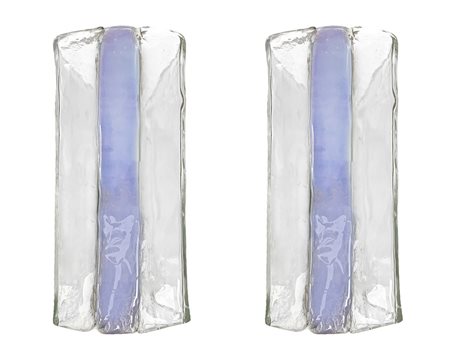 Produzione Mazzega, Coppia di applique in vetro di Murano, con striscia di vetro iridescente, anni ’70. H cm 40x18x10