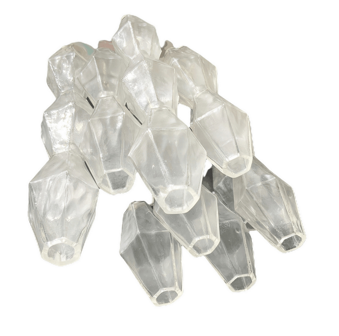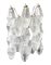 Produzione Muranese, nello stile di Carlo Scarpa N. 3 applique con struttura in metallo laccato, una in bianco, una cromata ed elementi in vetro trasparente. Anni ’70. H cm 40 x28