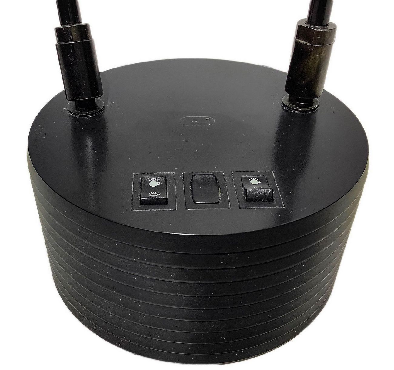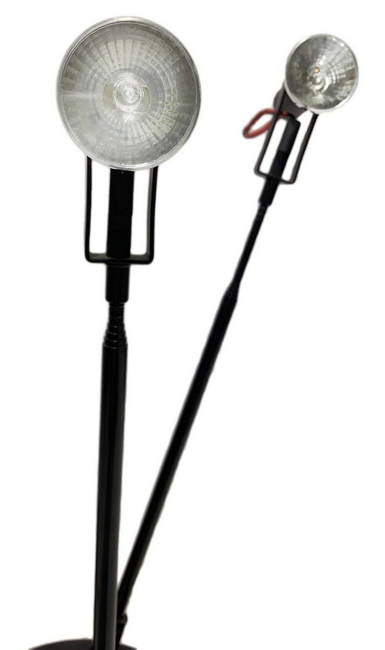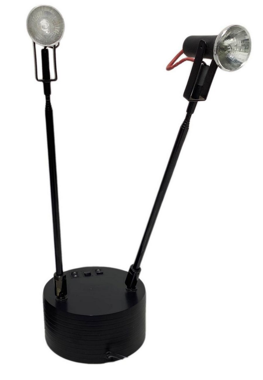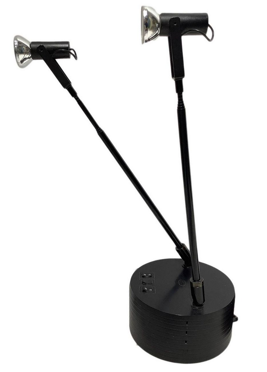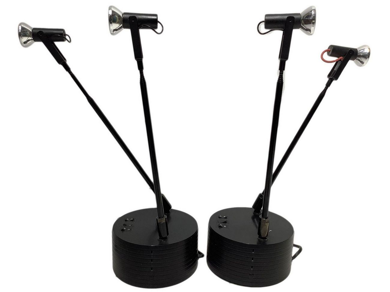 Luxo, disegno Hans Ansems, coppia di lampade da tavolo con diffusori telescopici in metallo laccato nero. Anni '80.