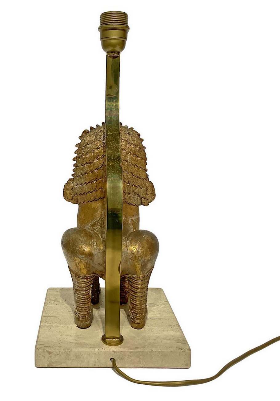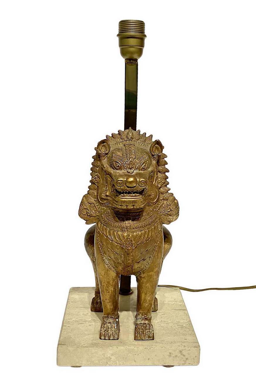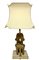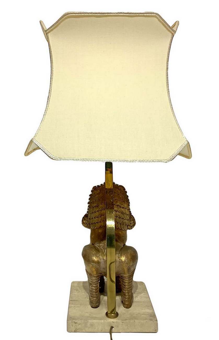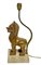 Lampada con base in marmo e cane di Phoe in bronzo e paralume in tessuto. H cm 30, l cm 35, p cm 35.