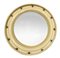 Specchiera in legno di forma circolare laccata nei toni dell'avorio. Dettagli dorati e specchio convesso, nello stile de