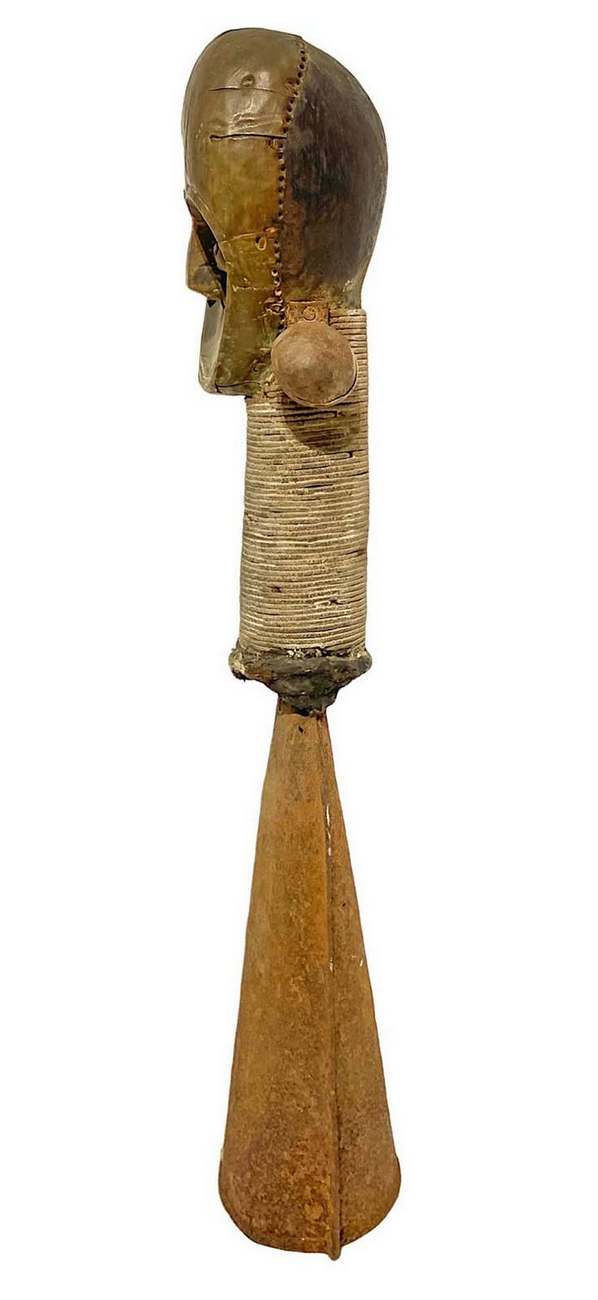 Campanaccio Gong in rame, Bamoun, Bamileke, Camerun, primi del ‘900. H cm 51