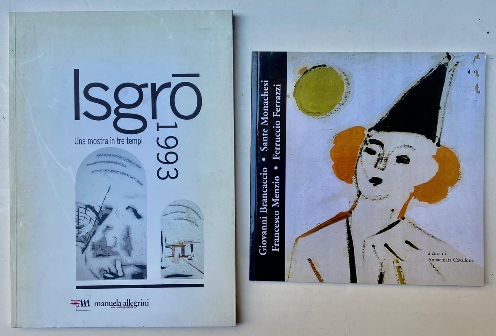 ARTE ITALIANA DEL ‘900 (ISGRO’ E ARTISTI VARI) Isgrò. Una mostra in tre tempi, 1993 Catalogo riccamente illustrato, edito in occasione della mostra dedicata all’artista, presso la Manuela Allegrini Arte Contemporanea, Milano, 1993 Manuela Allegrini Arte Contemporanea, Milano Cm 30x21 Pag 77 Giovanni Brancaccio, Sante Monachesi, Francesco Menzio, Ferruccio Ferrazzi, 2004 Catalogo riccamente illustrato, a cura di Annachiara Cavallone, edito in occasione della mostra dedicata agli artisti, Varese, 2004 Varese Cm 22x22