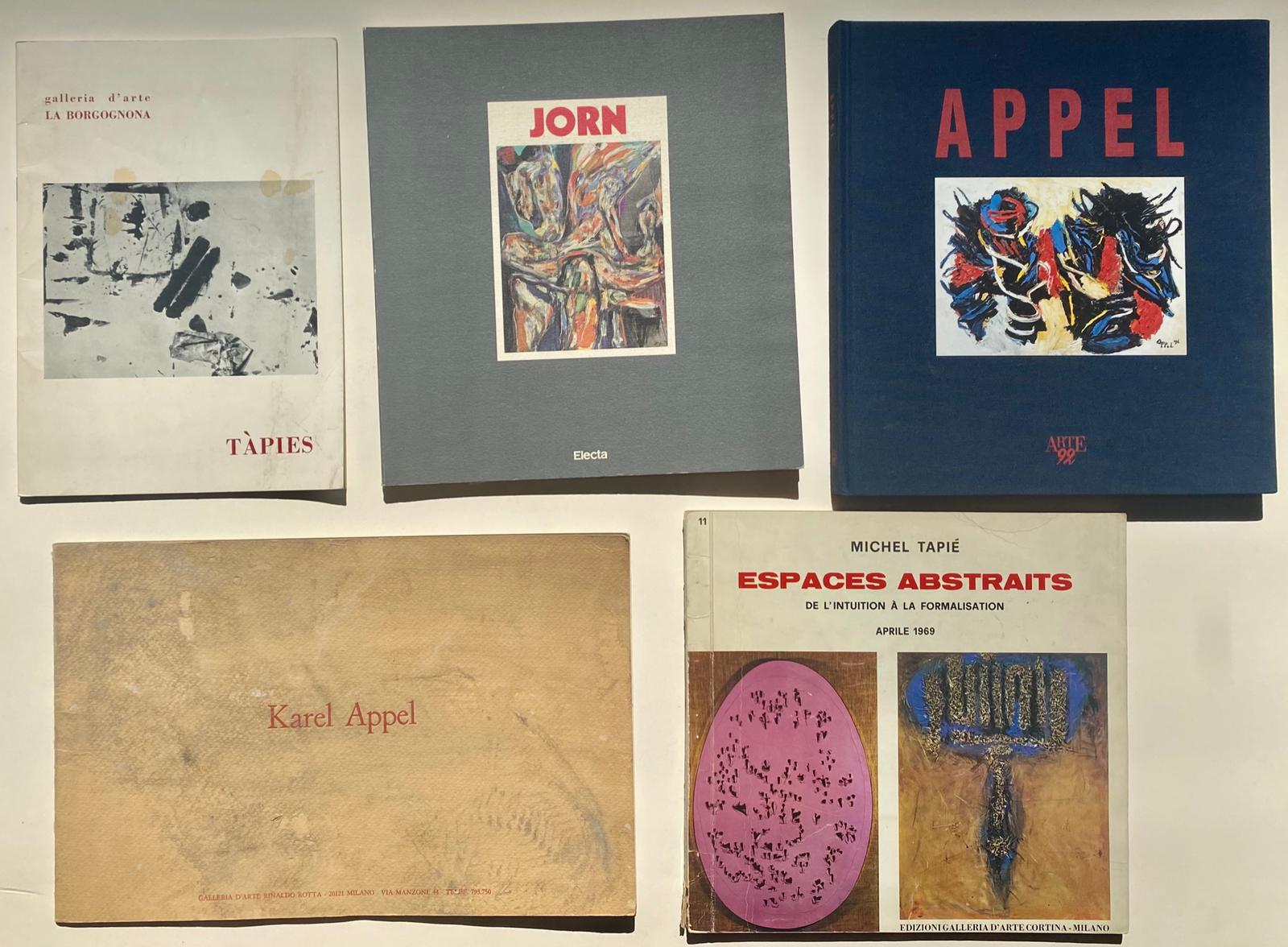 ARTE ASTRATTA (APPEL, JORN, TAPIE’, TA’PIES) Karel Appel, 2008 Catalogo riccamente illustrato, con testo di Claudio Cerritelli edito in occasione della mostra dedicata all’artista, presso la Galleria Arte 92, Milano, 2008 Galleria Arte 92, Milano Cm 25x23 Pag 77 Karel Appel Catalogo riccamente illustrato Galleria d’Arte Rinaldo Rotta, Milano Cm 20x30Asger Jorn. Tra pittura e scultura, 1990 Monografia riccamente illustrata Electa Editrice, Milano Cm 24x22 Pag 71Michel Tapié. Espaces abstraits de l’intuition a’ la formalisation, 1969 Catalogo riccamente illustrato Edizioni Galleria d’Arte Cortina, Milano Cm 22x23Tàpies, 1977 Catalogo riccamente illustrato, edito in occasione della mostra dedicata all’artista, presso la Galleria d'Arte La Borgognona, Roma, 1977 Galleria d'Arte La Borgognona, Roma Cm 24x17