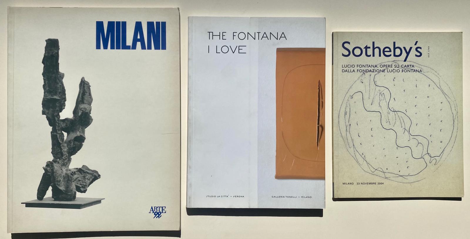 ARTE ITALIANA DEL ‘900 (FONTANA, MILANI) Sotheby’s. Lucio Fontana, opere su carta dalla Fondazione Lucio Fontana, 2004 Catalogo riccamente illustrato, edito in occasione della mostra dedicata all’artista, presso Sotheby’s, Milano, 2004 Sotheby’s, Milano Cm 21x17 Pag 59 The Fontana I love, 2015 Catalogo riccamente illustrato Studio La Città-Galleria Tonelli Cm 24x18 Pag 127Milani. Dalla statua alla forma, 1997 Catalogo riccamente illustrato, a cura di Martina Corgnati Galleria d’Arte 92, Milano Cm 28x21 Pag 77