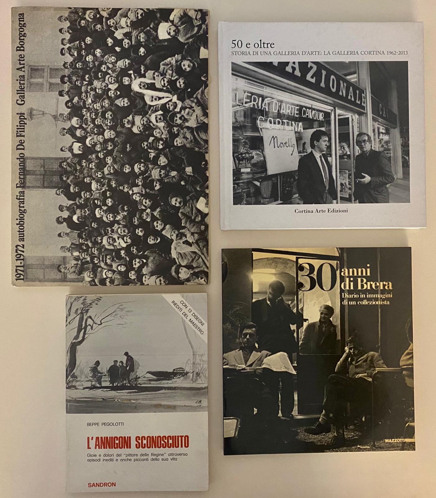LIBRI VINTAGE 30 anni di Brera. Diario in immagini di un collezionista, 1987 Catalogo riccamente illustrato, edito in occasione della mostra dedicata al tema, presso il Museo di Milano, 1987 Mazzotta Editore, Milano Cm 22x21 Pag 117 50 e oltre. Storia di una galleria d’arte: la galleria Cortina 1962-2013, 2013 Catalogo riccamente illustrato, edito in occasione della mostra dedicata al tema, presso la Galleria d’Arte Contemporanea Virgilio Guidi, Milano, 2013 Cortina Arte Edizioni, Milano Cm 23x23 Pag 1671971-1972 autobiografia Fernando De Filippi, 1973 Autobiografia riccamente illustrata Galleria Arte Borgogna, Milano Cm 30x22 Volume impresso in 1000 esemplari Edizione in lingua italiana, francese, ingleseL’Annigoni sconosciuto. Gioie e dolori del “pittore delle Regine” attraverso episodi inediti e anche piccanti della sua vita, 1980 Biografia riccamente illustrata, con 13 disegni inediti del maestro, a cura di Beppe Pegolotti Sandron, Firenze Cm 21x15 Pag 149