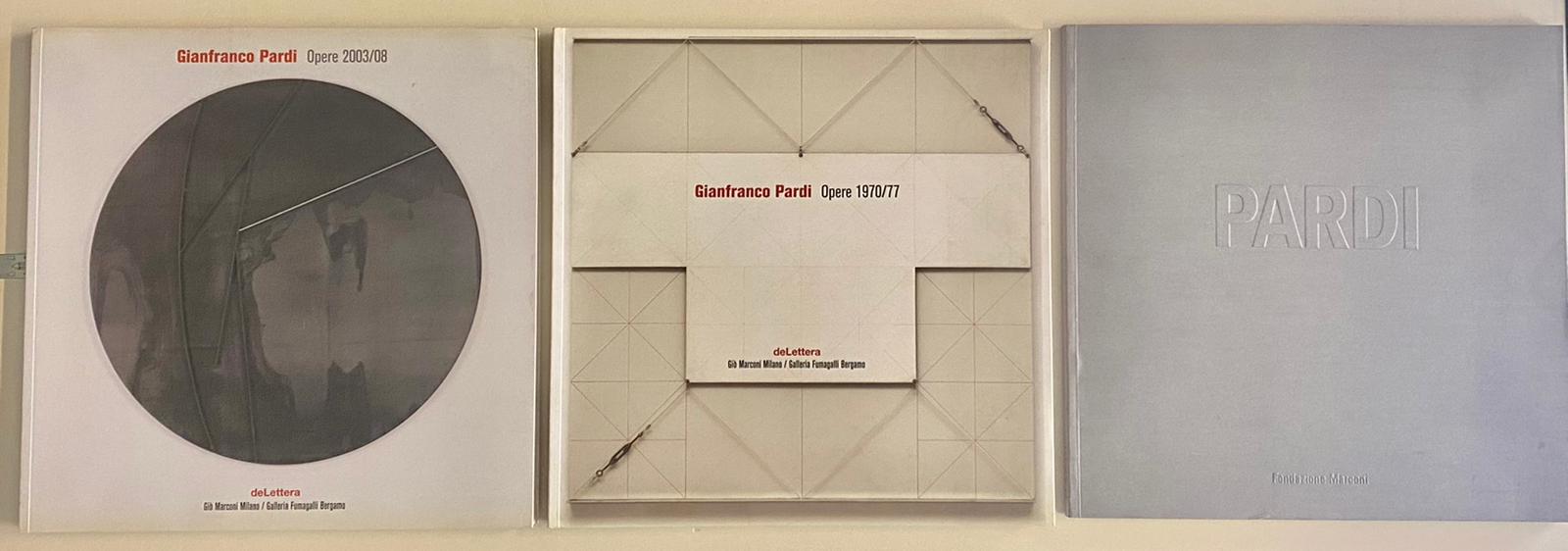 GIANFRANCO PARDI Gianfranco Pardi. Opere 1967-69, 2006 Catalogo riccamente illustrato, edito in occasione della mostra dedicata all’artista, presso la Fondazione Marconi, Milano, 2006 Fondazione Marconi, Milano Cm 30x30 Pag 175 Gianfranco Pardi. Opere 1970-1977, 2008 Catalogo riccamente illustrato, con introduzione di Bruno Corà, edito in occasione della mostra dedicata all’artista, presso la Giò Marconi-Galleria Fumagalli Bergamo, 2008 deLettera, Milano Cm 30x30 Pag 127Gianfranco Pardi. Opere 2003-2008, 2008 Catalogo riccamente illustrato, con introduzione di Bruno Corà, edito in occasione della mostra dedicata all’artista, presso la Giò Marconi-Galleria Fumagalli Bergamo, 2008 deLettera, Milano Cm 30x30 Pag 153
