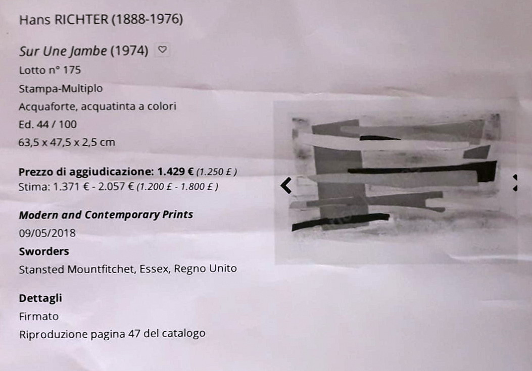 RICHTER HANS Berlino (Germania) 1888 Sur une Jambe 1974 Acquaforte acquatinta...