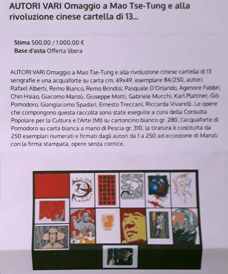 MANZÙ GIACOMO Bergamo (Bg) 1908 Omaggio a Mao Tse-Tung e alla rivoluzione...