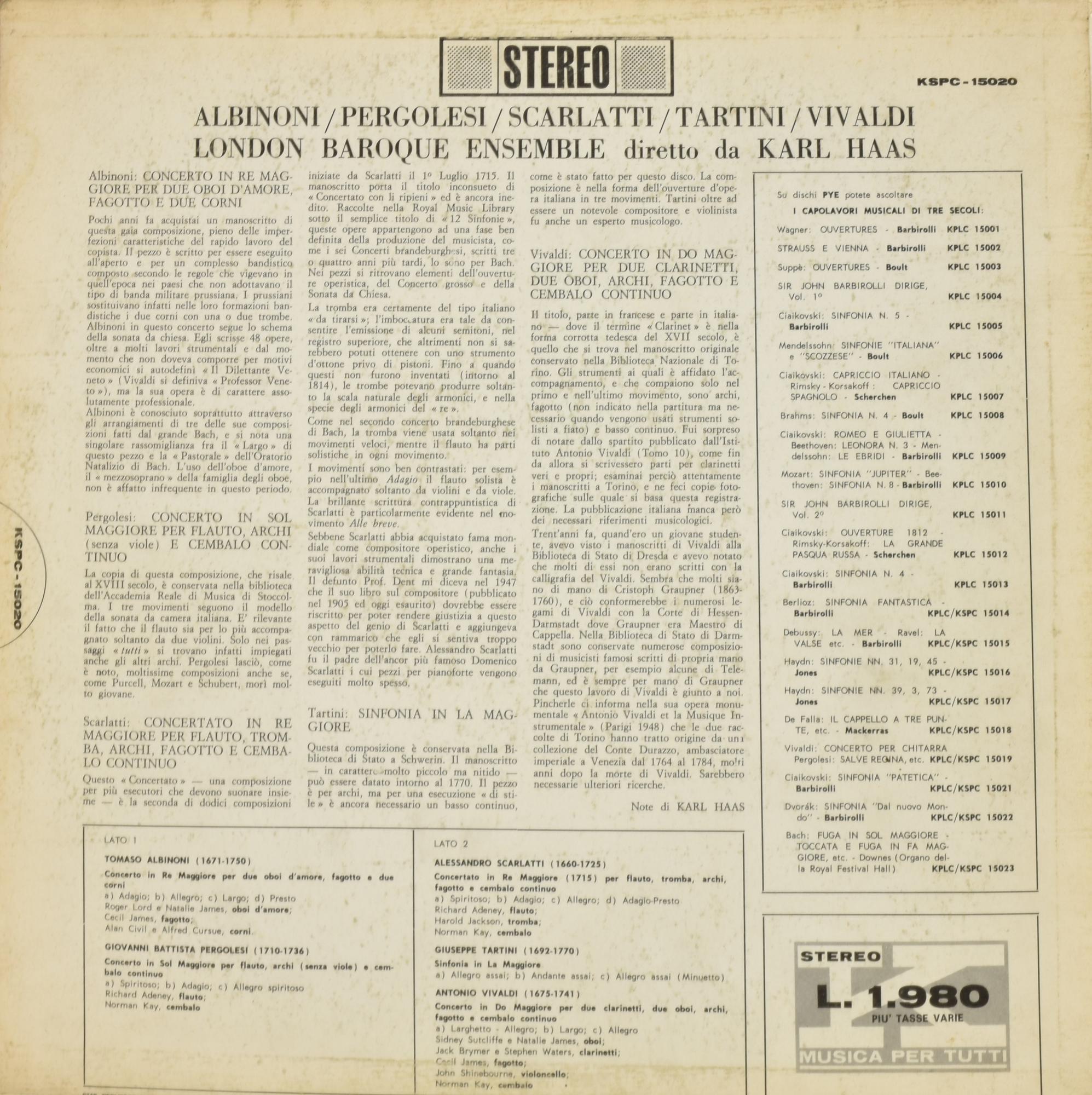 The London Baroque Ensemble diretta da Karl Haas ALBINONI, TARTINI,...