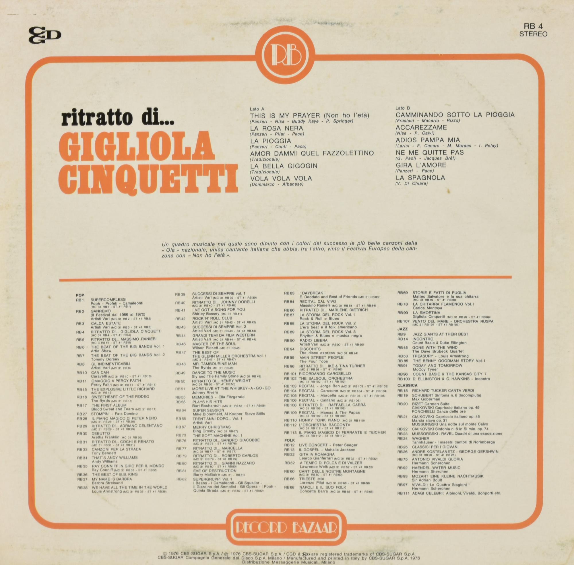 Gigliola Cinquetti RITRATTO DI... LP 33 giri, Record Bazaar, CBS-Sugar 1976