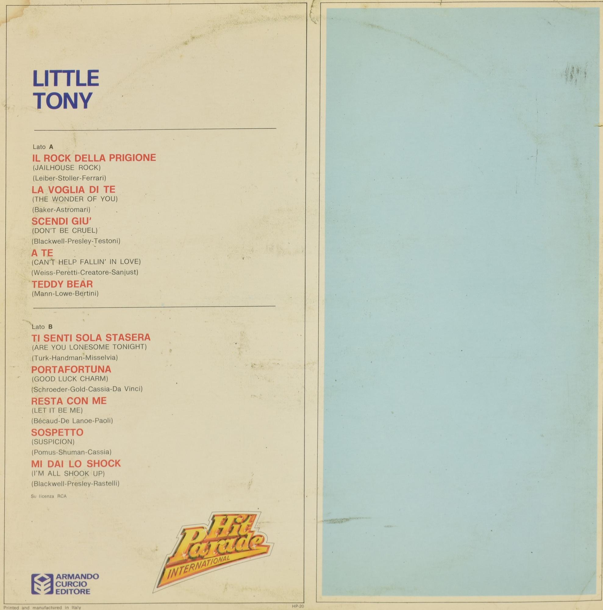 Precedente Lotto 24 Successivo Livebid - Via Tiziano Vecellio 34/D, 10126 Torino DISCHI VINTAGE E DA COLLEZIONE Sessione Unica giovedì 27 maggio 2021 ore 21:00 (UTC +01:00) Little Tony LITTLE TONY LP 33 giri, RCA, 1982 Little Tony LITTLE TONYLP 33 giri, RCA, 1982