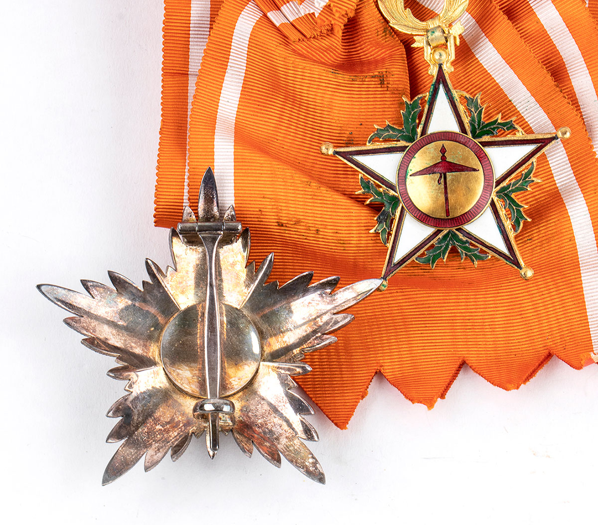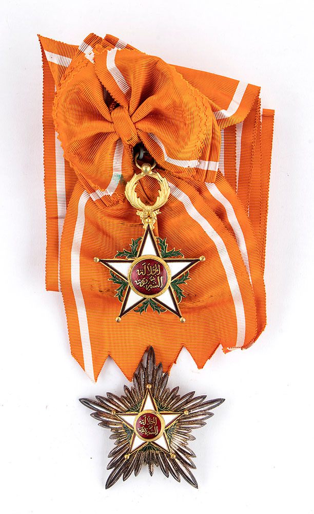Marocco, Ordine Oissam al Alaouite, set di Gran Croce Set di Gran Croce con placca e pendente, fascia di seta, buona fattura.