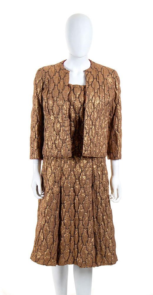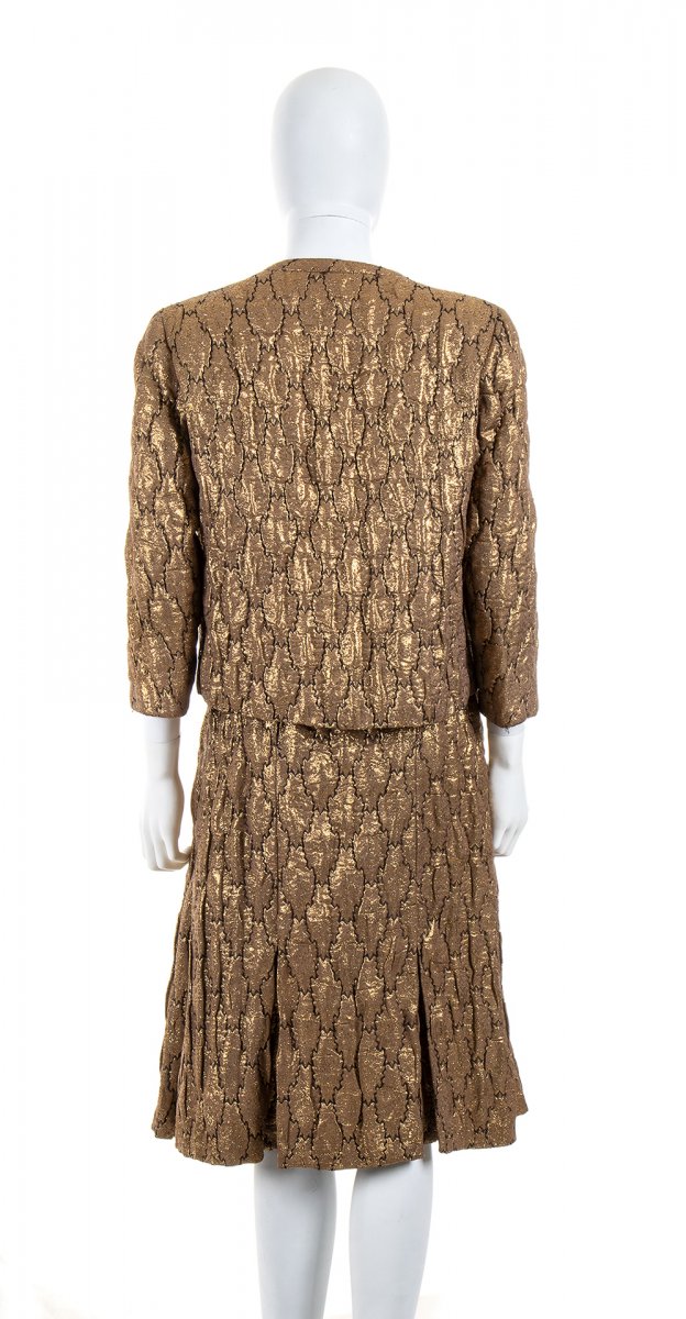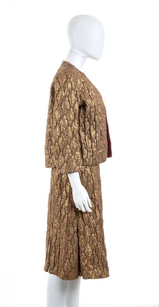 Inizio anni ‘60 Completo Gandini (giacca e abito) inizio anni 60 in tessuto dorato lavorazione matelassé