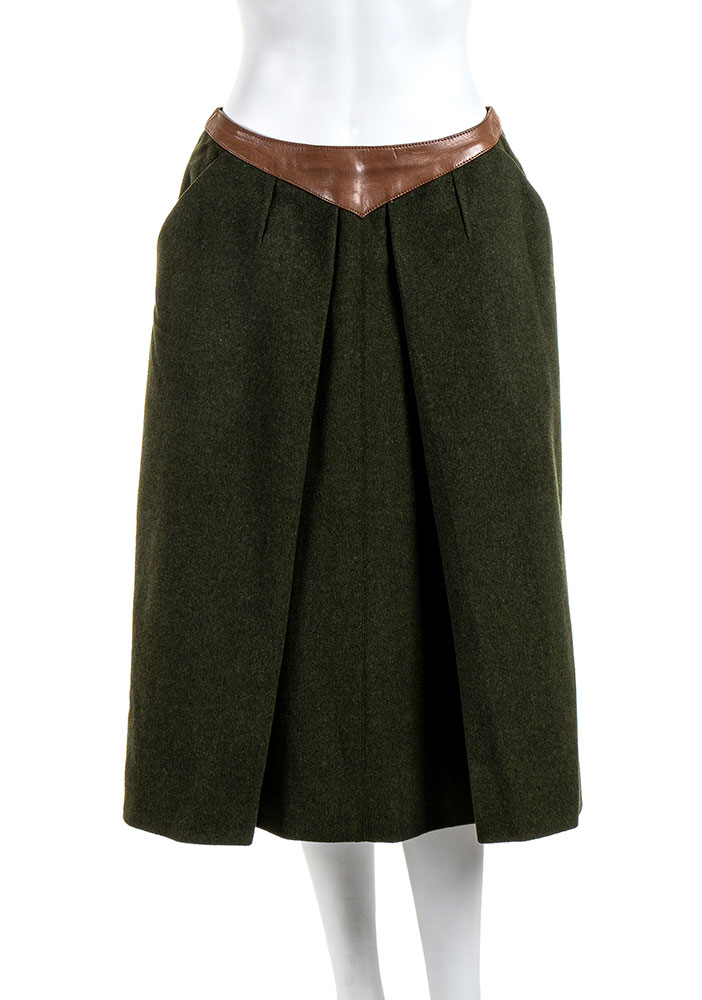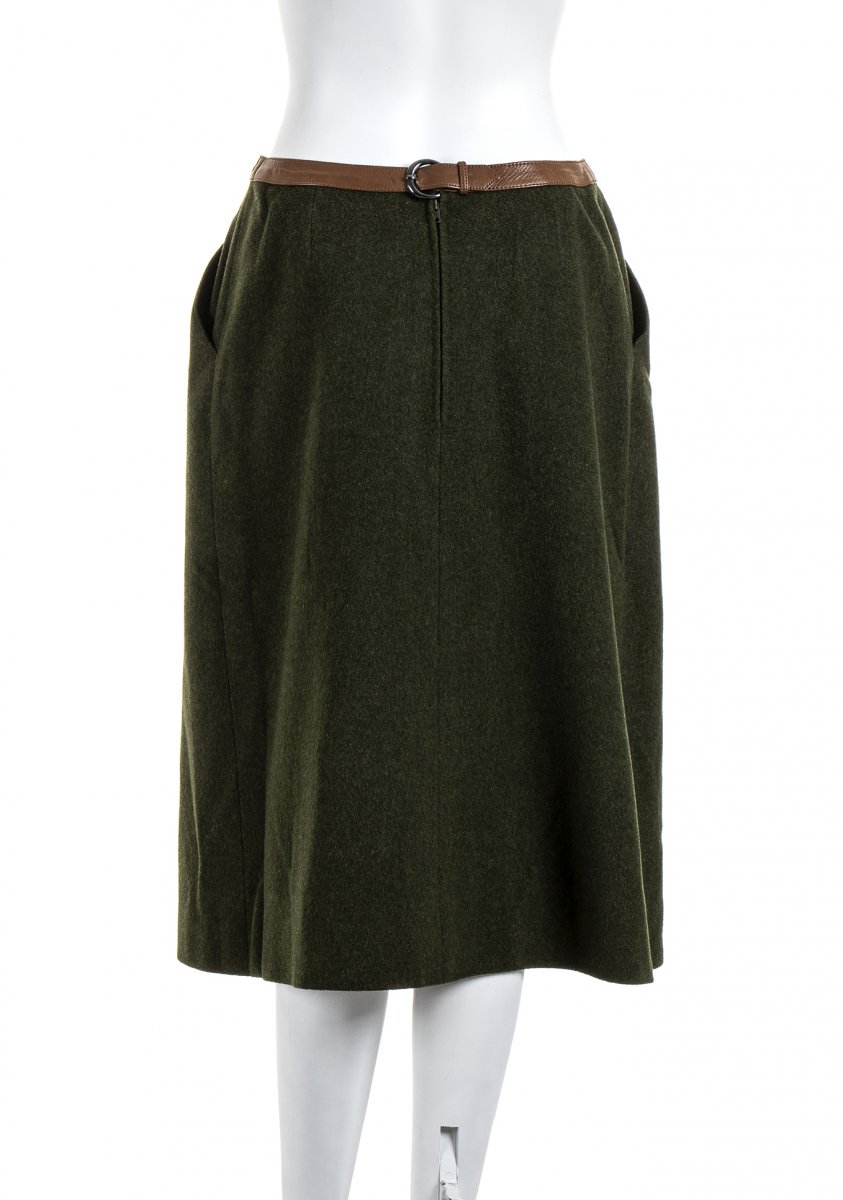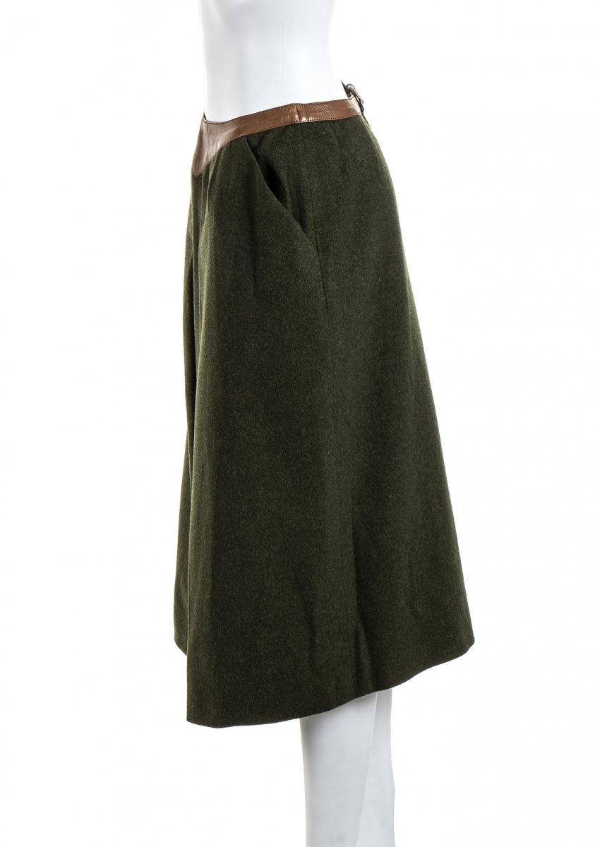 Anni ‘80 Gonna in lana verde scuro, cintura in pelle marrone