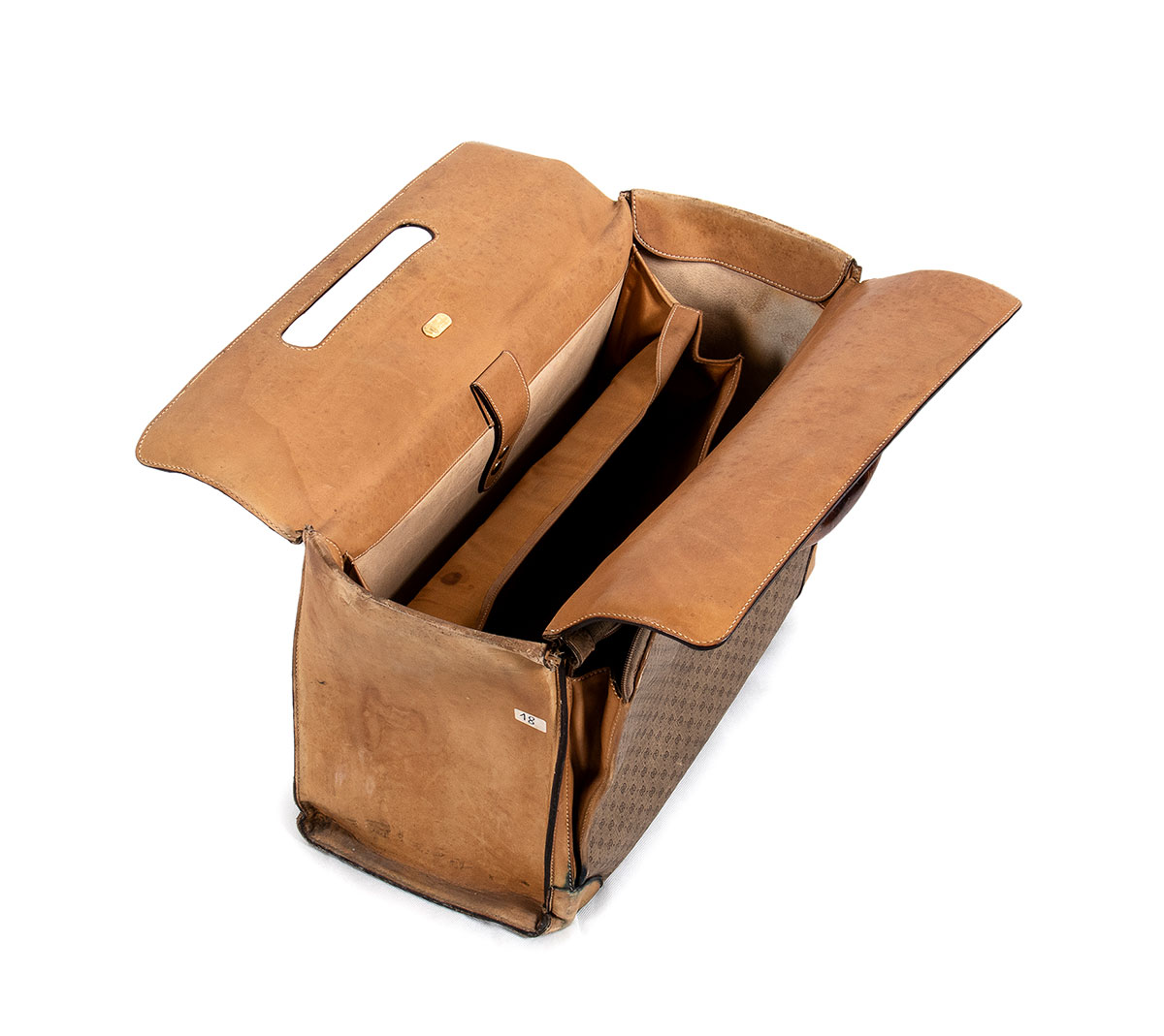 Anni ‘70 Valigetta in pelle marrone e tela con monogramma