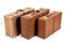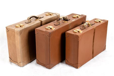 Anni ‘80 Lotto di 3 valigie rigide in pelle marrone, minuteria dorata