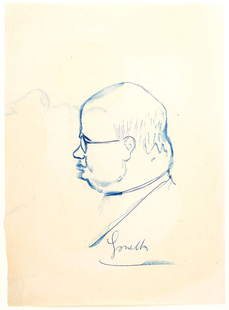 FANFANI, Amintore - Vignette e disegni - anni '40 - (Pieve Santo Stefano, 6 febbraio 1908 – Roma, 20 novembre 1999)