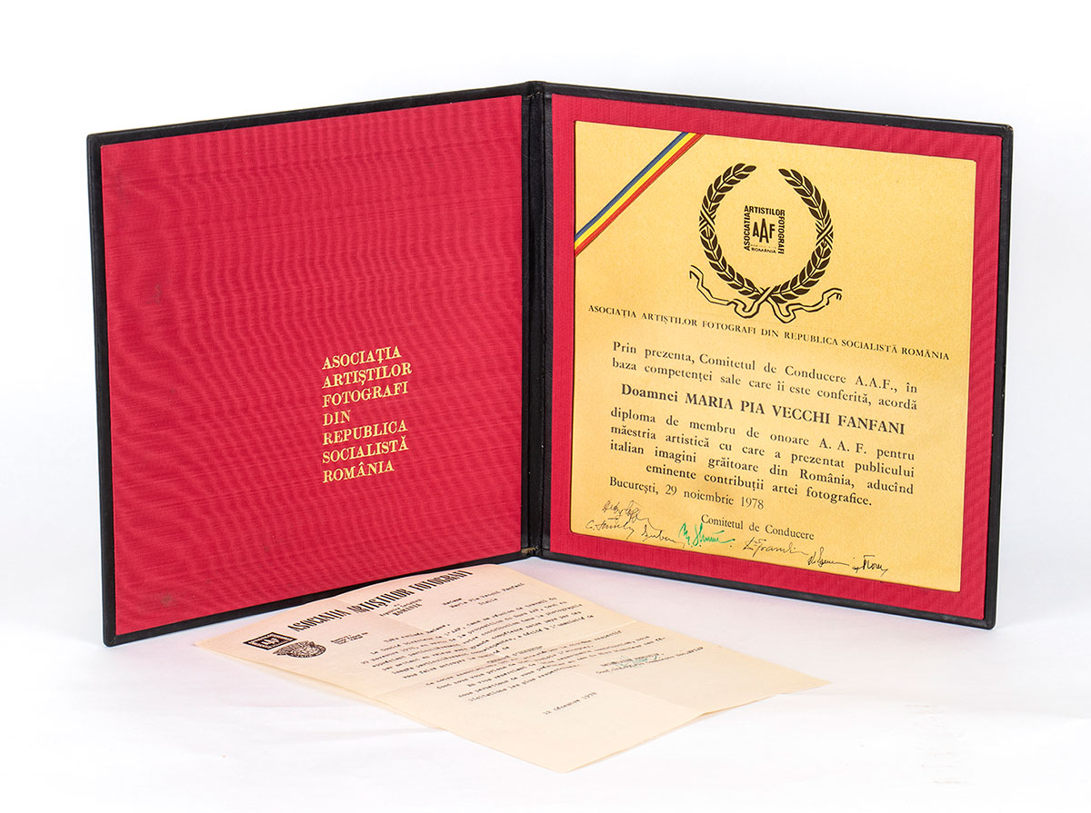 Riconoscimenti vari AAF Associazione Artisti Fotografia , Romania Socialista a Maria Pia Fanfani , 1978