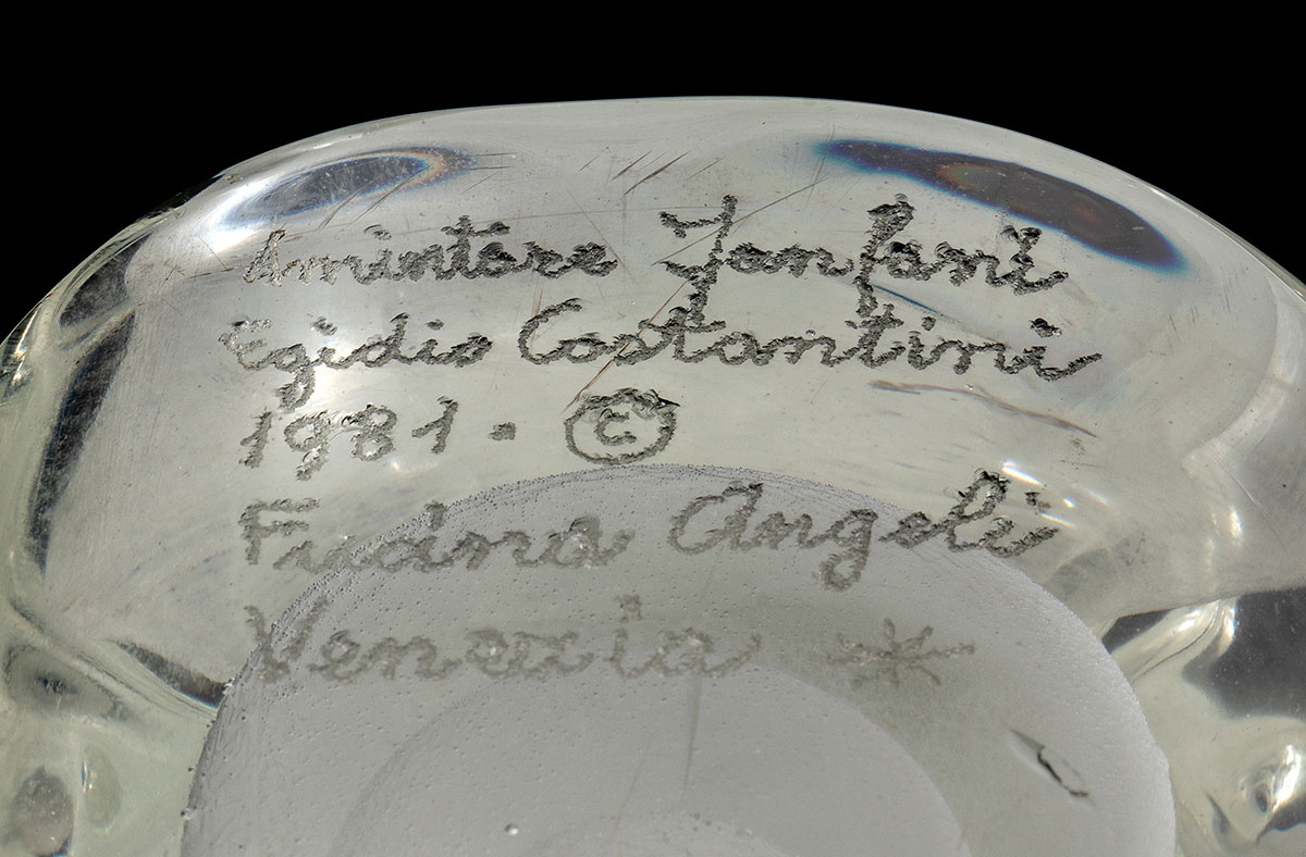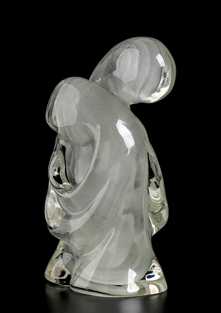 Egidio Costantini - Fucina degli Angeli, Venezia Scultura in vetro dal titolo L'ABBRACCIO su disegno di Amintore Fanfani, produzione della Fucina degli Angeli di Egidio Costantini, Venezia 1981, firmata alla base