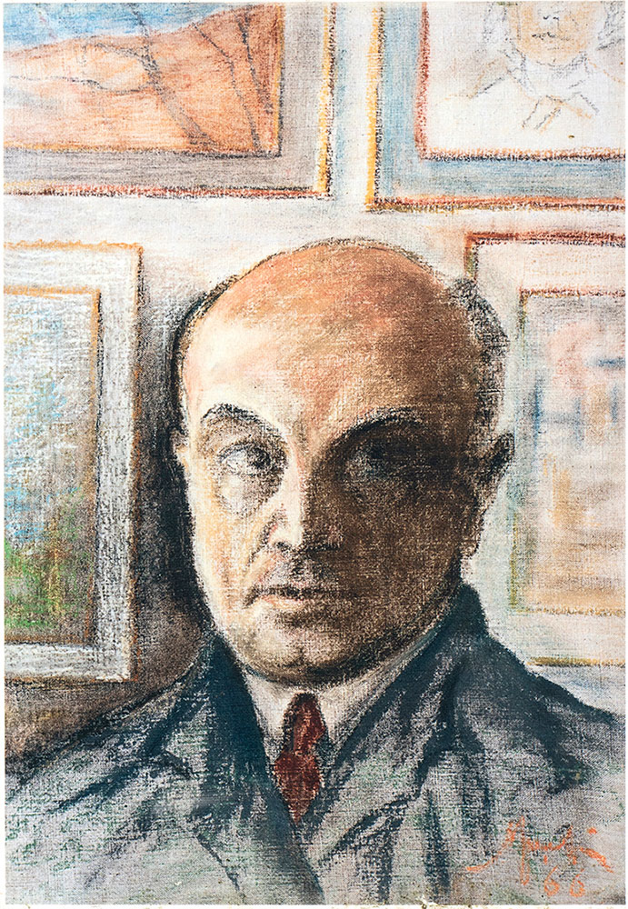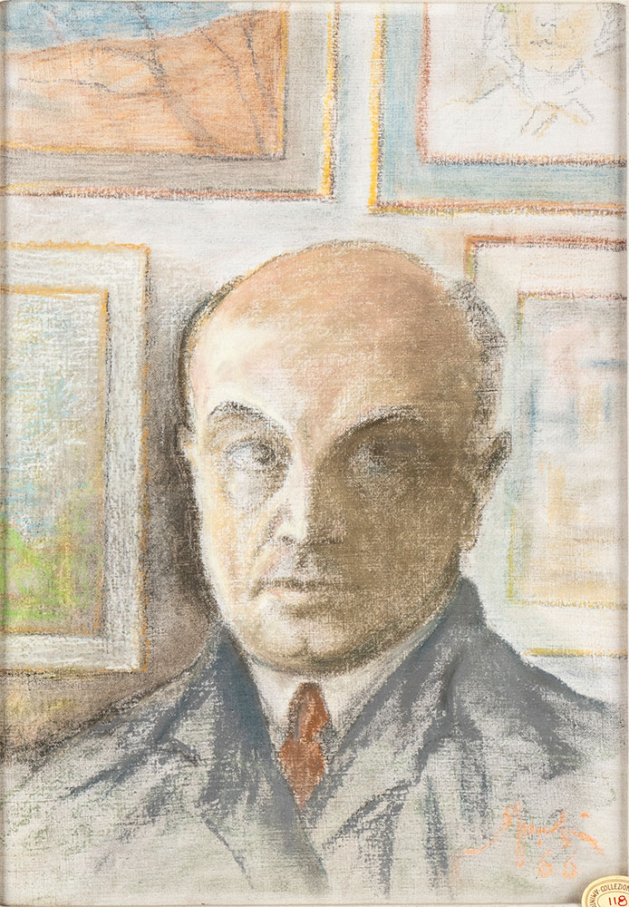 FANFANI, Amintore (Pieve Santo Stefano, 6 febbraio 1908 – Roma, 20 novembre 1999) Lotto di una composizione originale firmata Amintore Fanfani "Autoritratto" pastello su cartoncino telato, 1966, insieme ad altra stampa dello stesso. In cornice