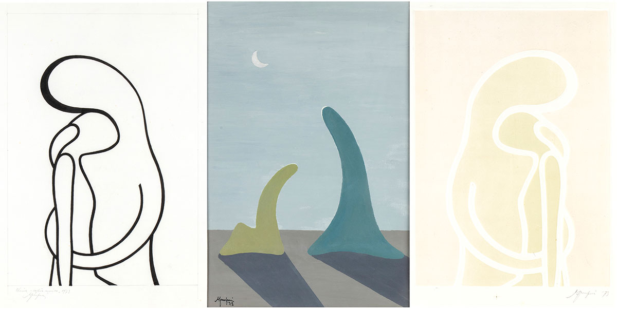 FANFANI, Amintore (Pieve Santo Stefano, 6 febbraio 1908 – Roma, 20 novembre 1999) Lotto di tre composizioni originali "Notte dell'annunciazione" acrilico su tavola firmato 1972 Esposto alla Biennale di Arta Sacra di Celano, ed altre due opere. In cornice