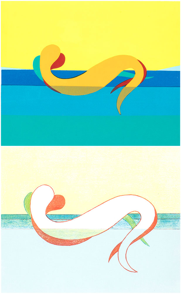 FANFANI, Amintore (Pieve Santo Stefano, 6 febbraio 1908 – Roma, 20 novembre 1999) Lotto di due composizioni "Sirene astratte" serigrafia e litografia. In cornice