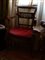 Poltrona in mogano, schienale di linea dritta, cartella ornata con ovale lavorato a traforo raffigurante pesci intrecciati, seduta in paglia di Vienna.