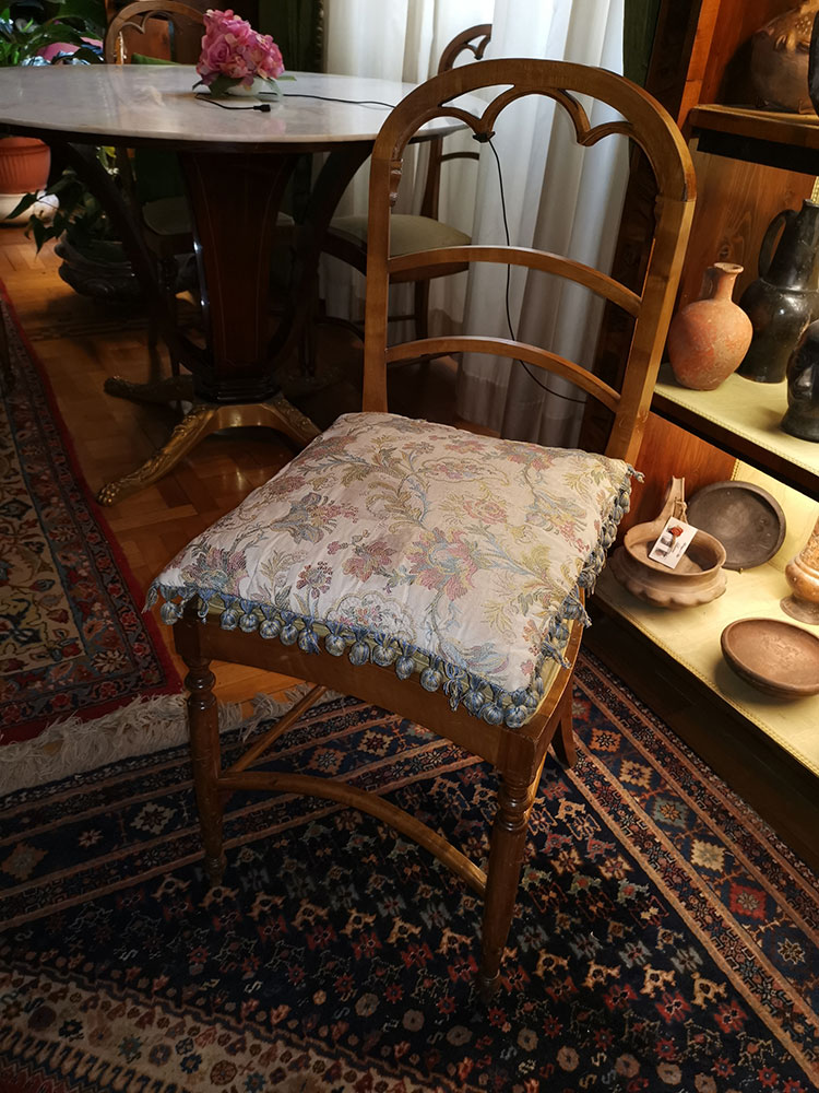 Sedici sedie in legno chiaro, manifattura di Chiavari (piccoli difetti, una da riparare).