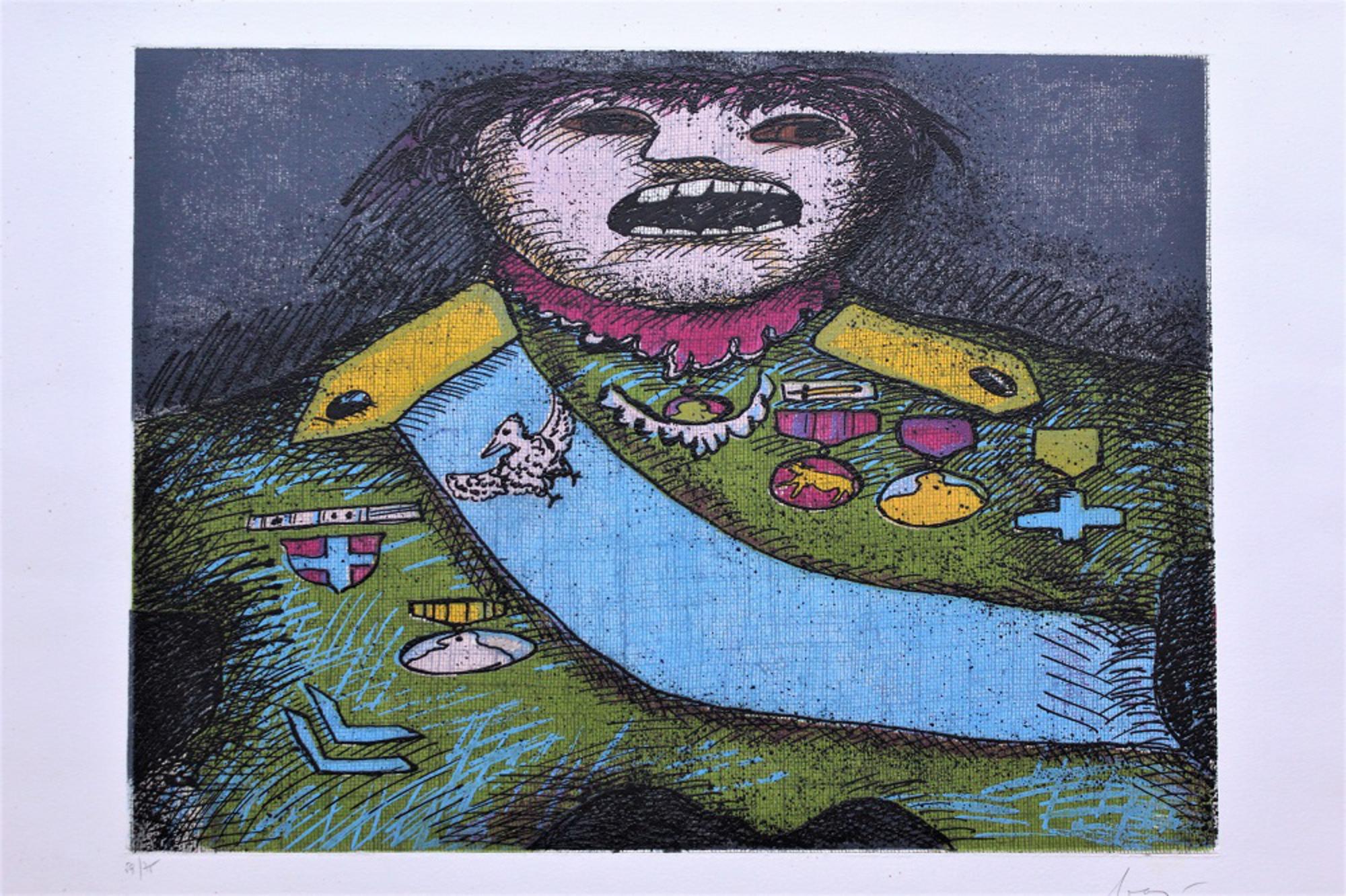 Enrico Baj SENZA TITOLO serigrafia, cm 52x74 firma es.