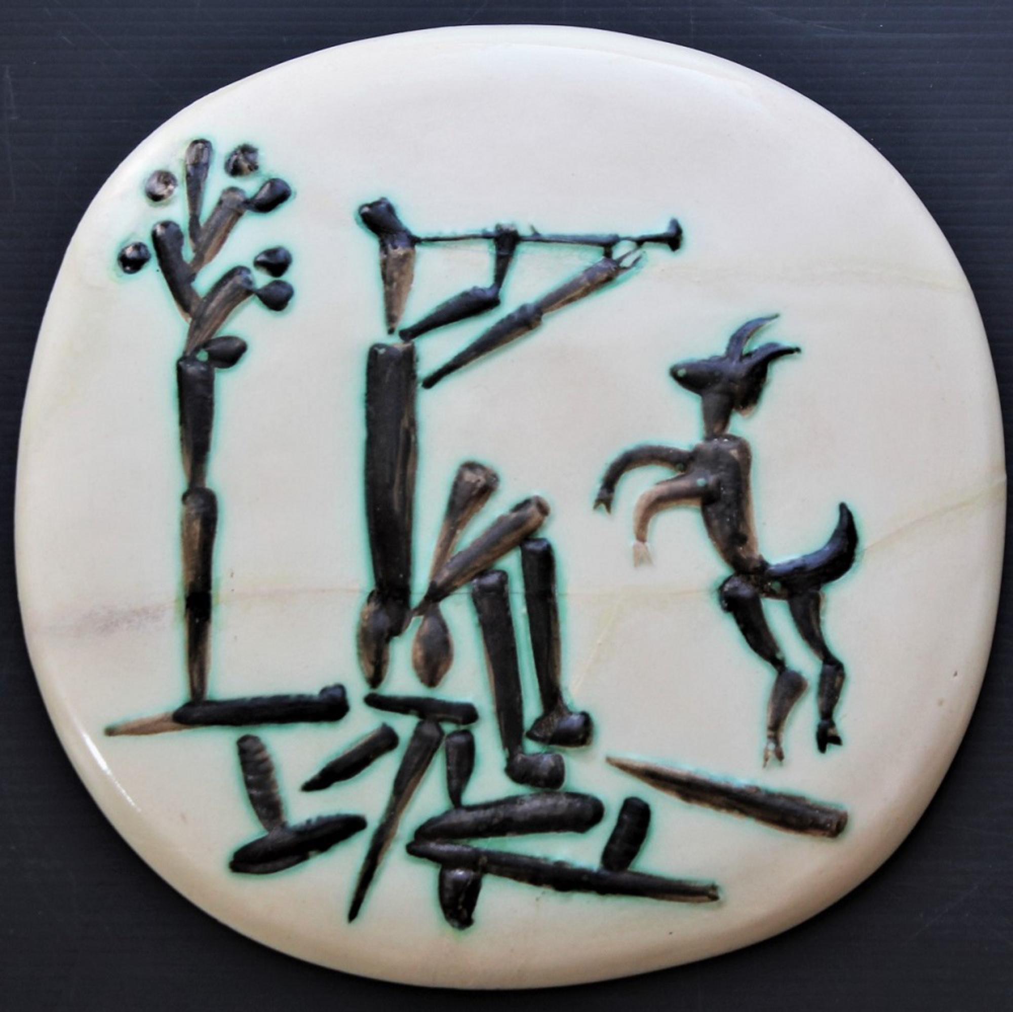 Pablo Picasso JOUEUR DE FLUTE ET CHEVRE piatto in ceramica smaltata, cm 25,5...