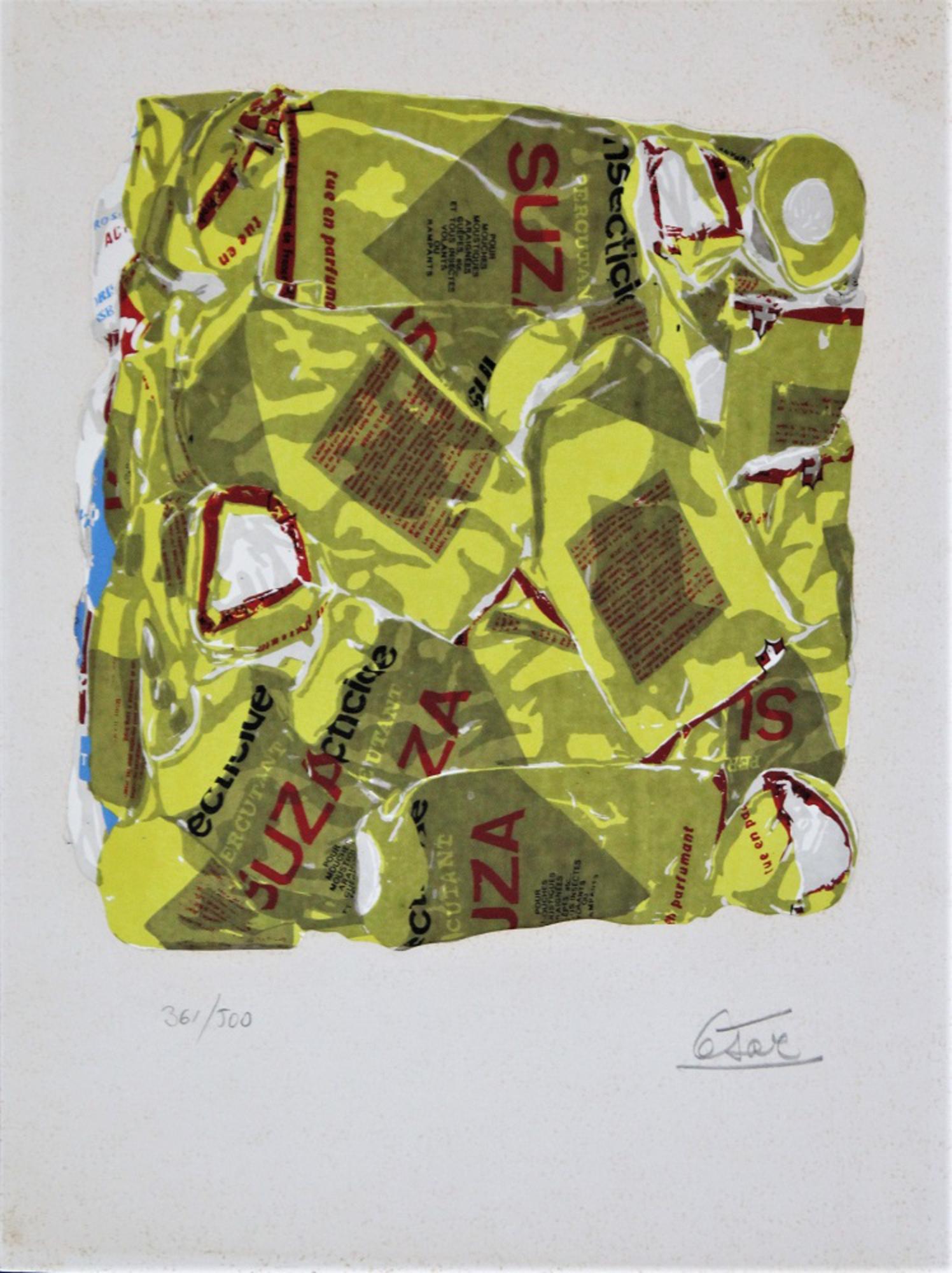 Cesar Baldaccini SENZA TITOLO serigrafia e collage, cm 40x30 firma es. 361/500