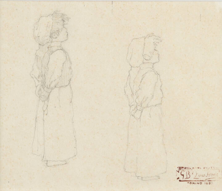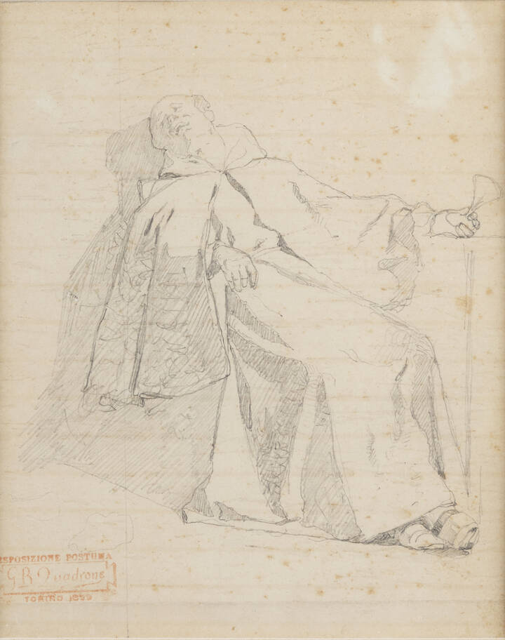 Esp. : - 1895, "Esposizione postuma di Giovan Battista Quadrone", (timbro in rosso su ogni disegno)
