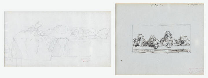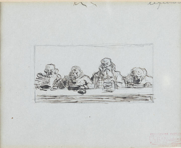 Esp. : - 1895, "Esposizione postuma di Giovan Battista Quadrone", (timbro in rosso su ogni disegno)