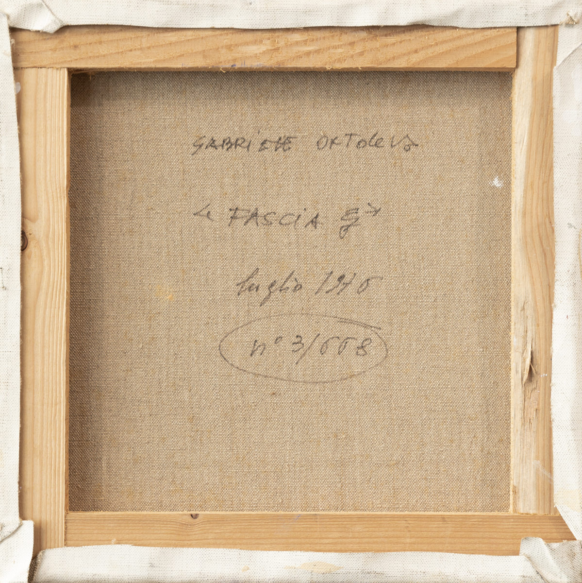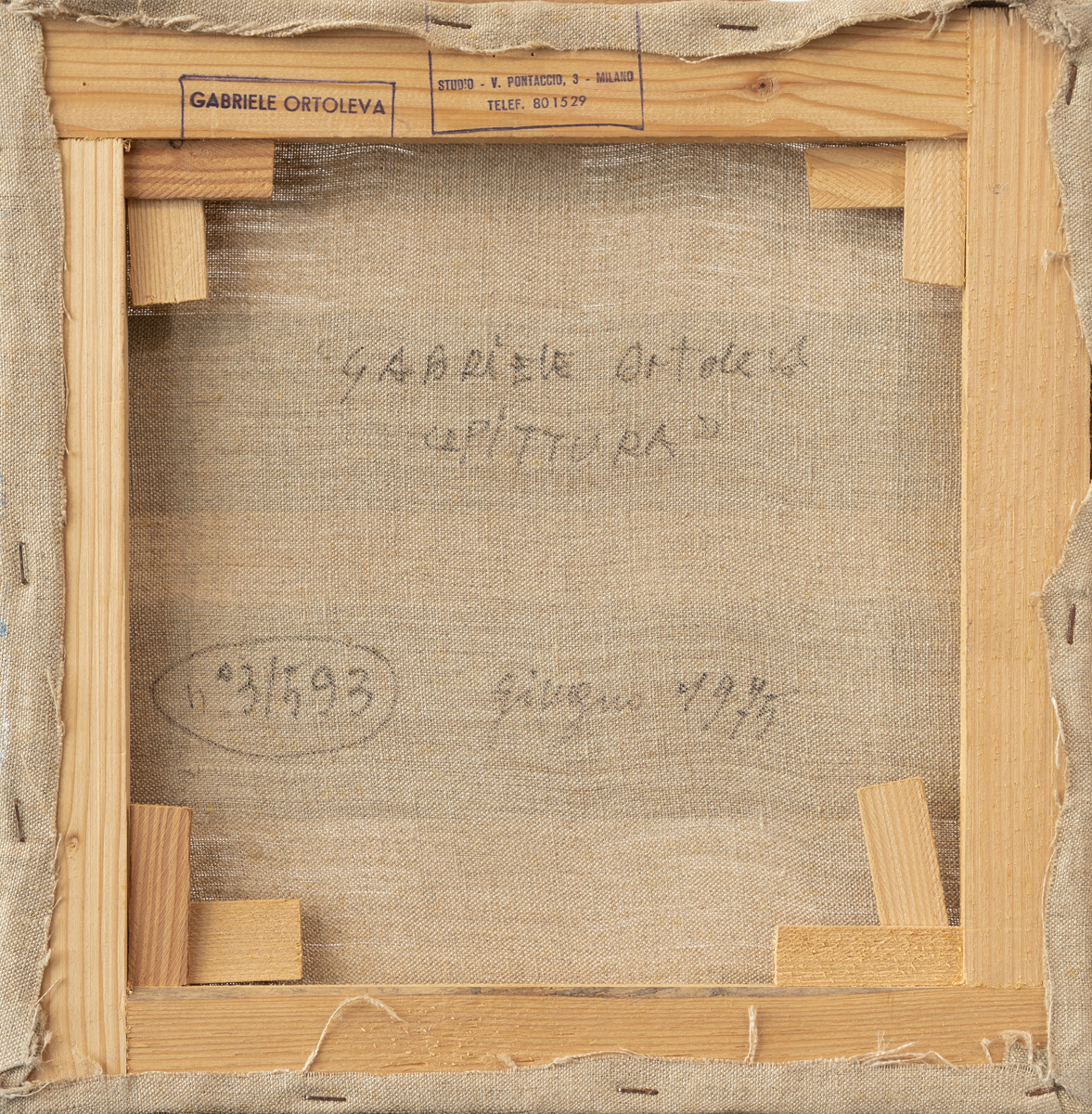 Firma, titolo, datazione, numero di repertorio e timbri dell'Artista al retro