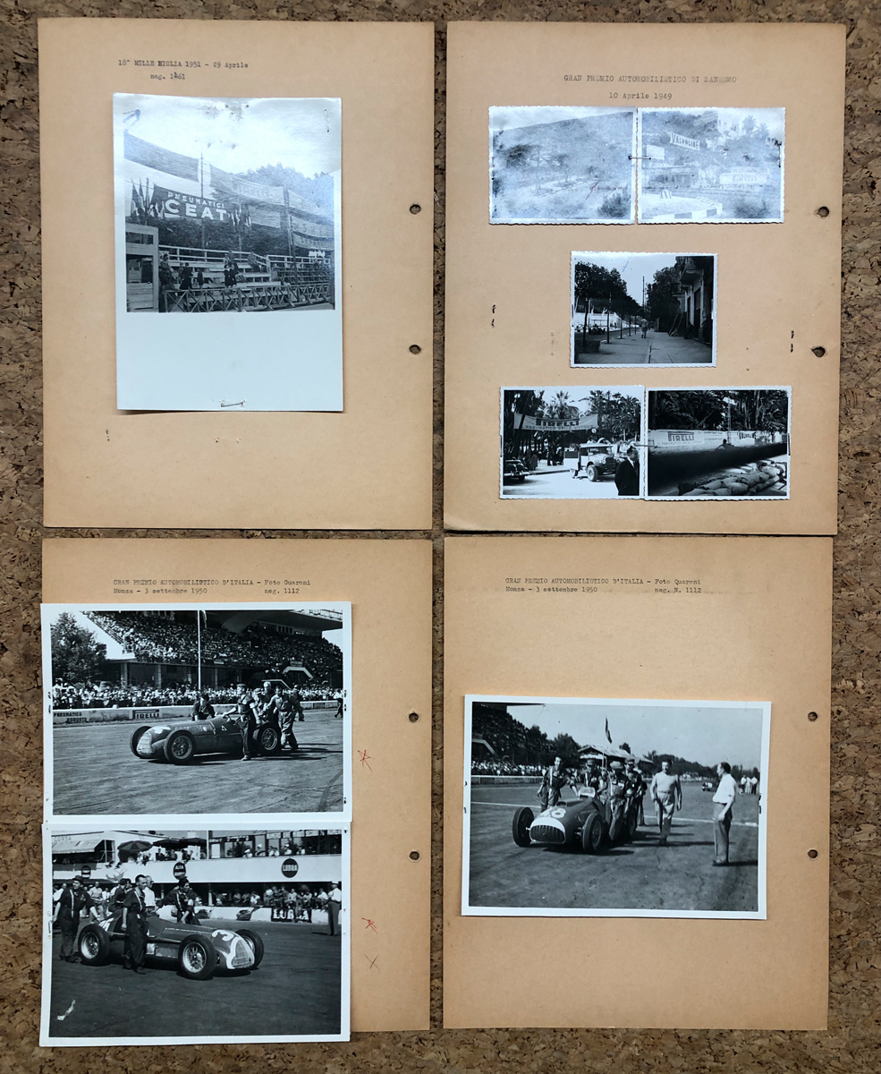 Lotto unico composto da 6 fotografie di Quaroni e ulteriori 8 fotografie di Gran Premi Italiani 1949-1950