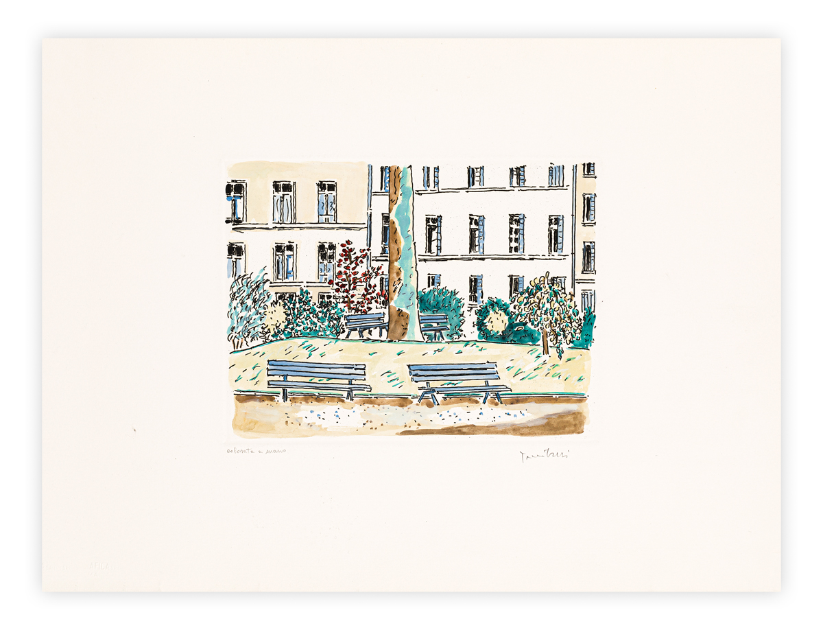 Firma e iscrizione "Colorata a mano" a matita al fronte