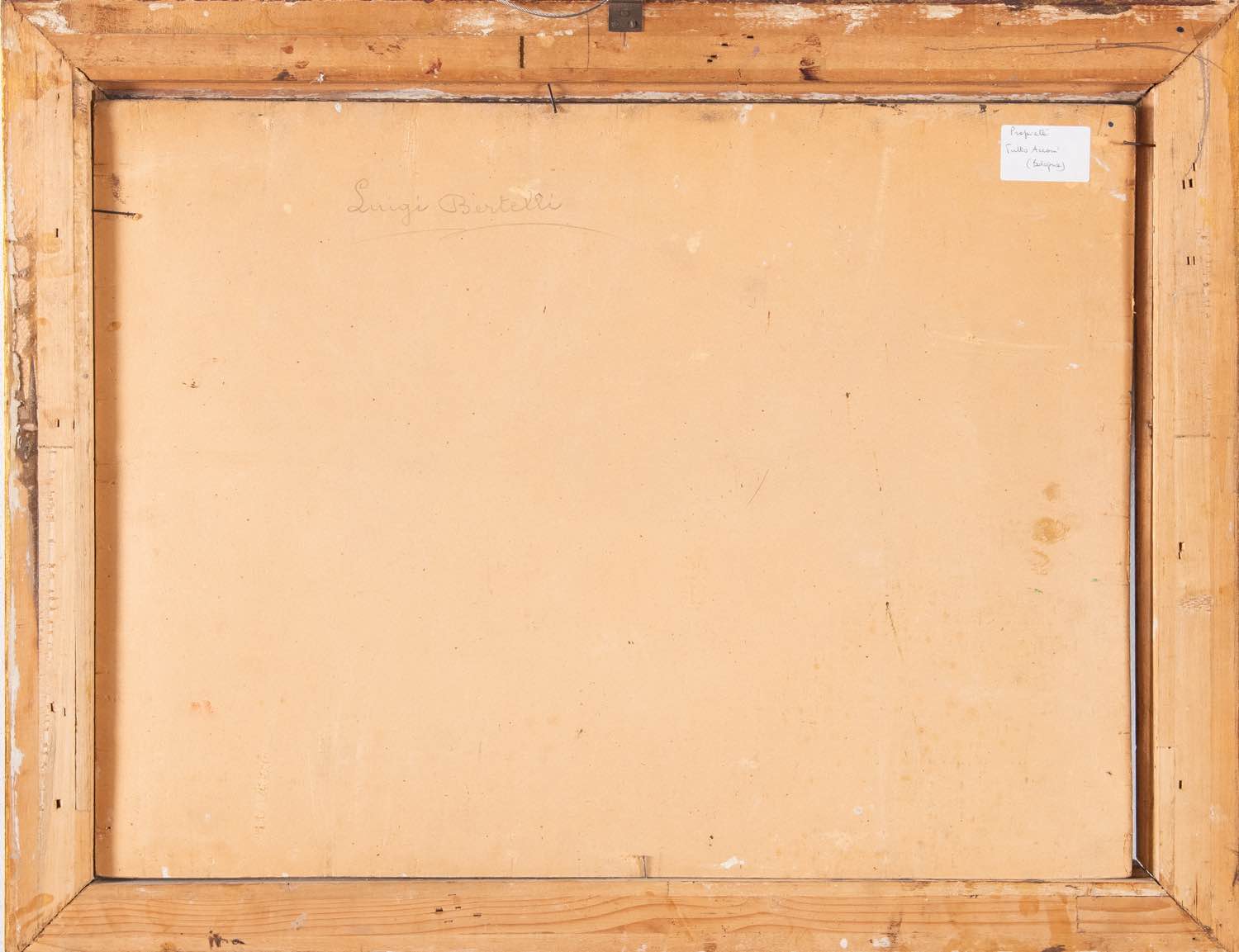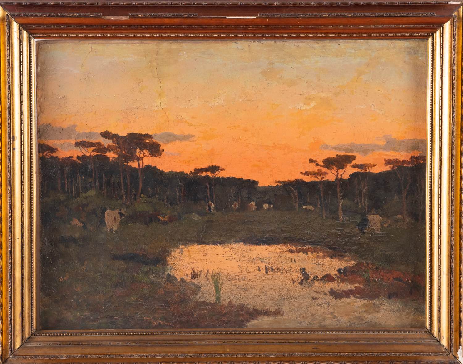 Luigi Bertelli (San Lazzaro di Savena 1833 - Bologna 1916), “Alba in pineta”, 1880-1885 circa Olio su cartone, firmato al retro Luigi Bertelli, H cm 44.5x60 Bibliografia di riferimento: Catalogo della Mostra Antologica ‘Luigi Bertelli - Palazzo d’Accursio, Bologna, 3 Dicembre 2011 - 16 Gennaio 2012 - Associazione Bologna per le Arti - Umberto Allemandi & C, n. 24, pubblicato a piena pagina.Opere provenienti dalla collezione dell’antiquario bolognese Accursio Accorsi